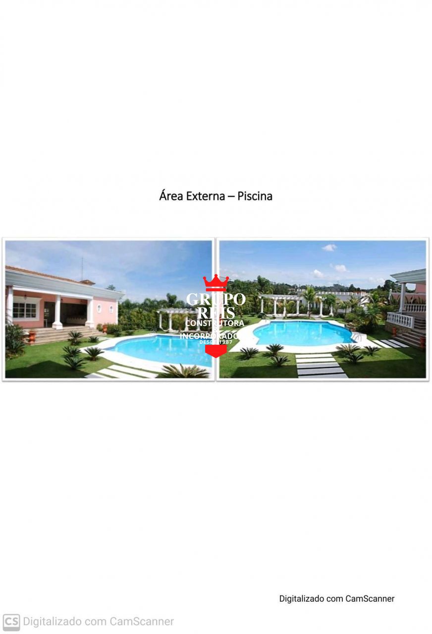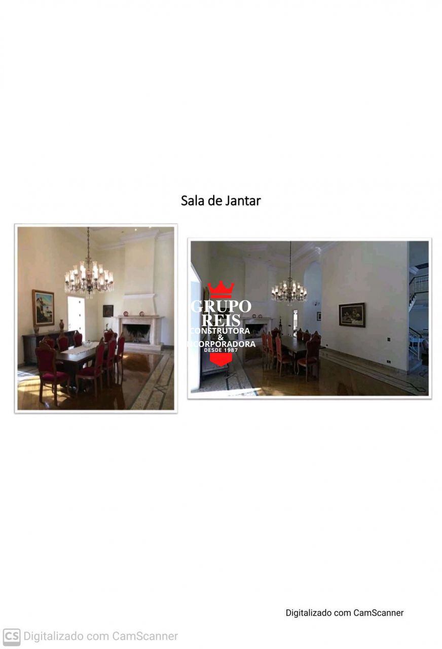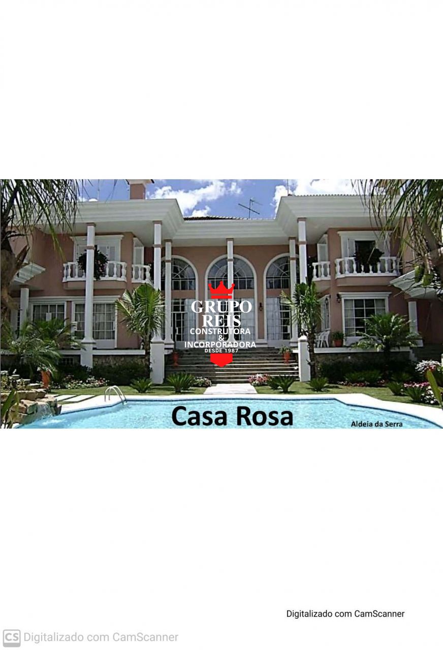Magnífica Mansão, situada dentro de um condomínio fechado de altíssimo padrão em Aldeia da Serra, sobre um terreno com 3.400,00 m² contendo 1.650,00 m² de área construída em ótimo acabamento em 3 pavimentos onde o projeto racional concebeu uma distribuição harmoniosa dos ambientes, sempre prezando aspectos de norteamento de iluminação natural, funcionalidade, comodidade e independência das áreas exclusivas, dotada das seguintes dependências, 7 suítes, hidromassagem, mais 3 apartamentos para empregados com banheiros, hall social, sala de lareira, biblioteca com escritório, lavabo, sala de jantar, sala de estar, excelente copa cozinha planejada completa com armários embutidos, living, varanda principal, sala de música, sala de ginástica, salão de jogos, salão de festas para 200 pessoas, varanda do salão de festas, adega cinematográfica, sauna a vapor com banheiro para ducha, piscina aquecida em alvenaria com trocador de calor (aquecimento) com tubulações em cobre, vestiário com banheiro de apoio à piscina, churrasqueira completa com forno de pizza e fogão a lenha, despensa, área de serviço, lavanderia, casa de máquinas com filtro e equipamentos Jacuzzi, garagens para 5 carros, projeto paisagístico com gramados, plantas e floreiras que fornecem o equilíbrio entre a natureza e localização do imóvel, jardins de inverno, toda iluminada. O Imóvel está com toda a documentação totalmente em ordem.