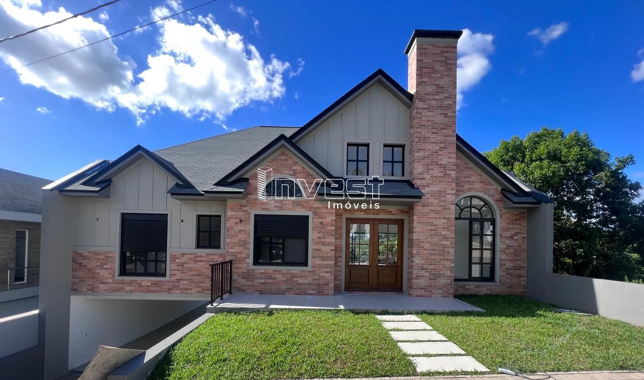 Belíssima casa em construção em local tranquilo e de fácil acesso. Casa com 314m², assim dividida: PISO SUPERIOR: Hall de entrada, Sala de estar com lareira, Sala de Jantar gourmet com churrasqueira, cozinha com ilha, terraço com vista, lavanderia, dormitório suíte com closet, 2 dormitórios e banheiro social, lavanderia e lavabo. PISO INFERIOR: garagem p 4 carros, salão de festas com área de cozinha e churrasqueira e depósito, banheiro e hall de serviço. Piscina e pelo jardim.