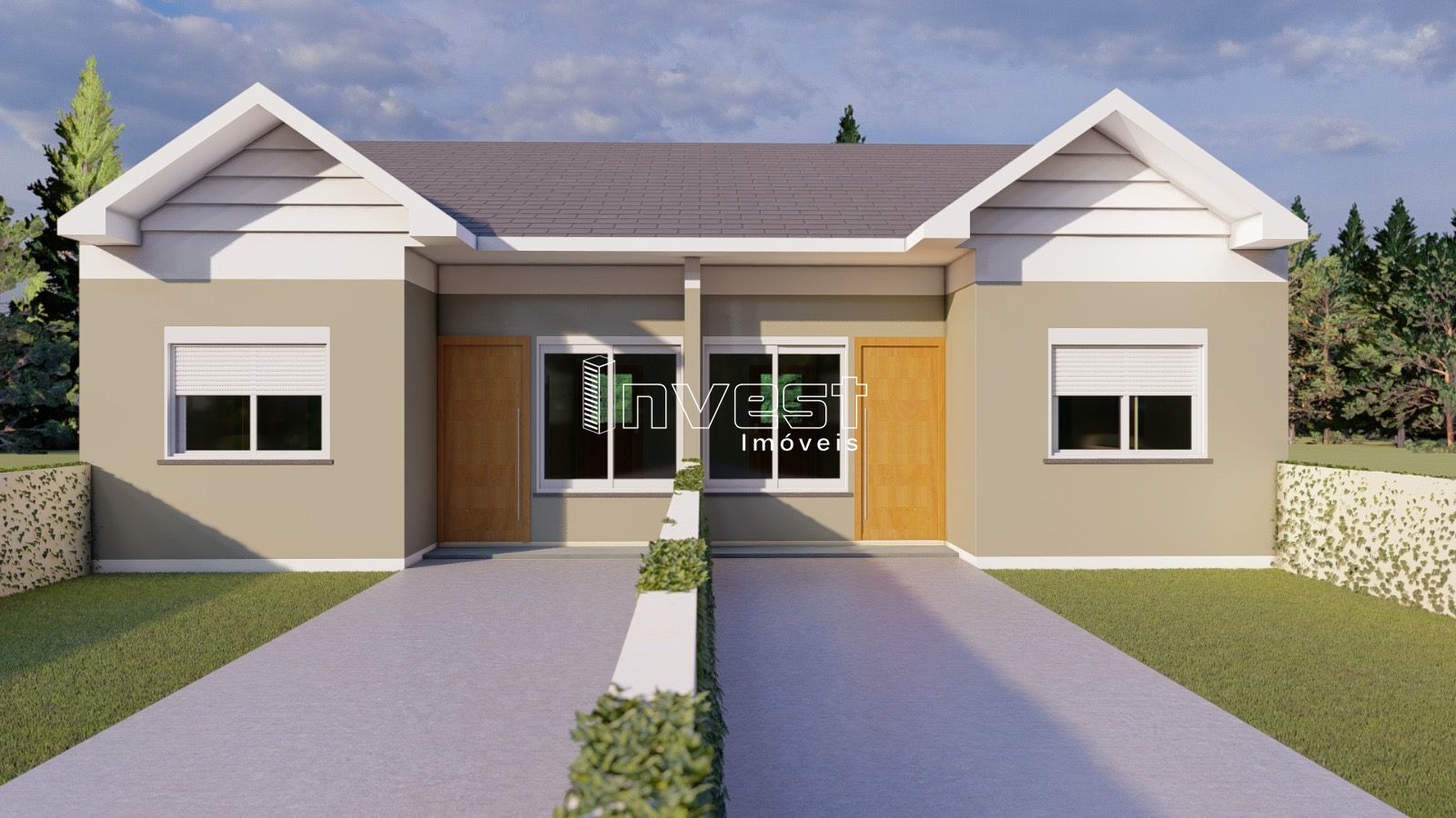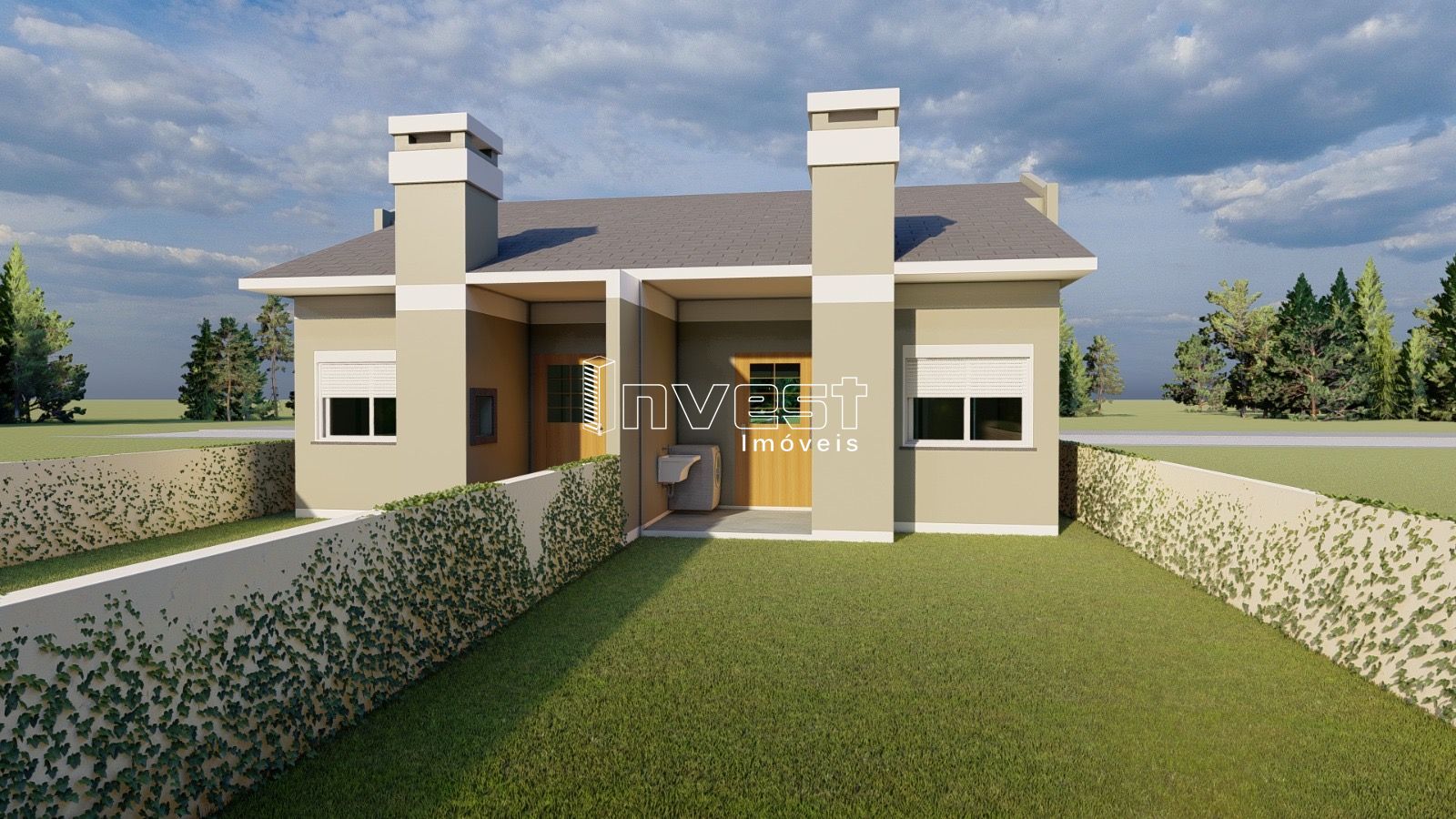 Dois dormitórios, sala de estar e jantar integradas, cozinha, banheiro social, lavanderia , churrasqueira, pátio frente e fundos