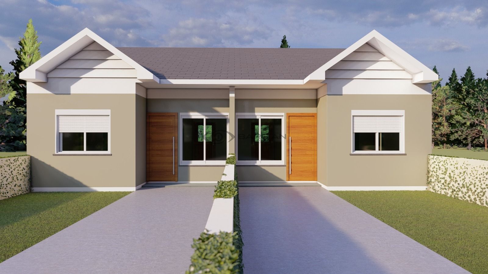 São dois dormitórios, sala de estar com cozinha integrada, banheiro, área de serviço com churrasqueira e vaga de garagem. Pátio frente e fundos. Imóvel com aberturas em alumínio, próximo a escola, creche, mercados e muito mais.