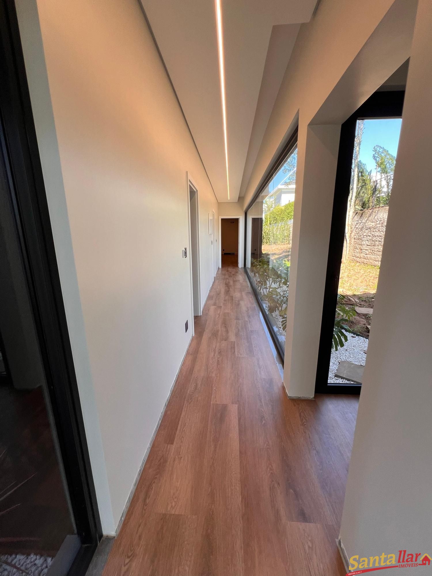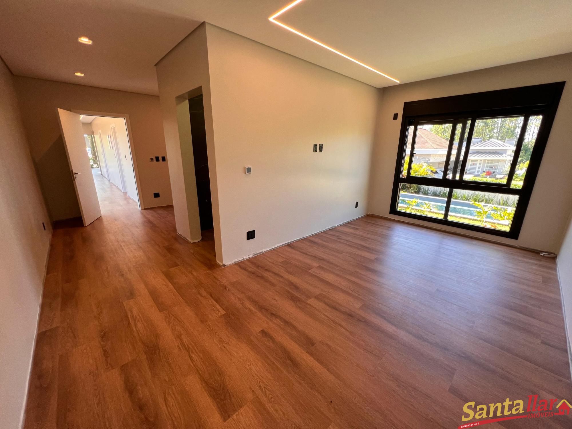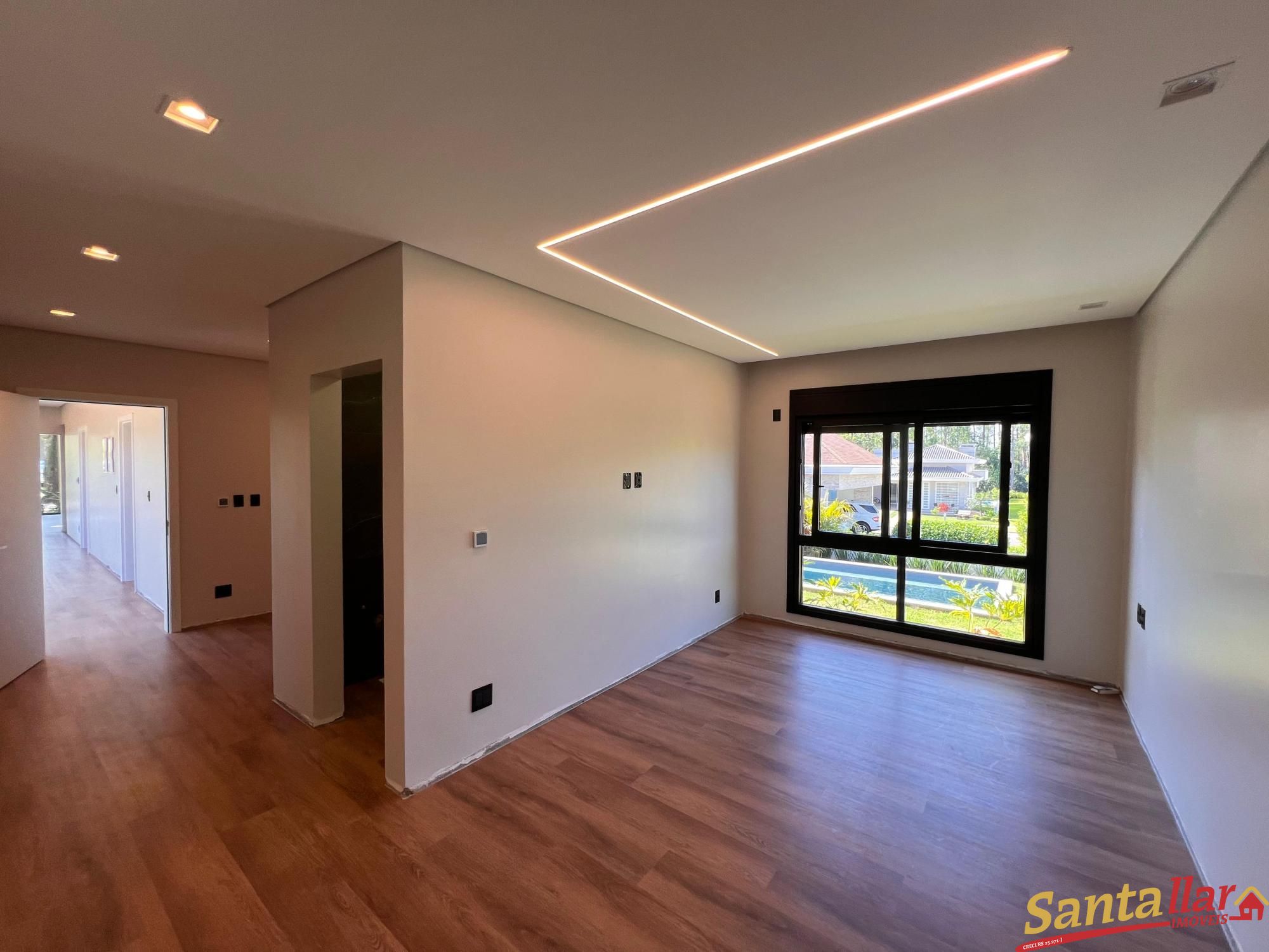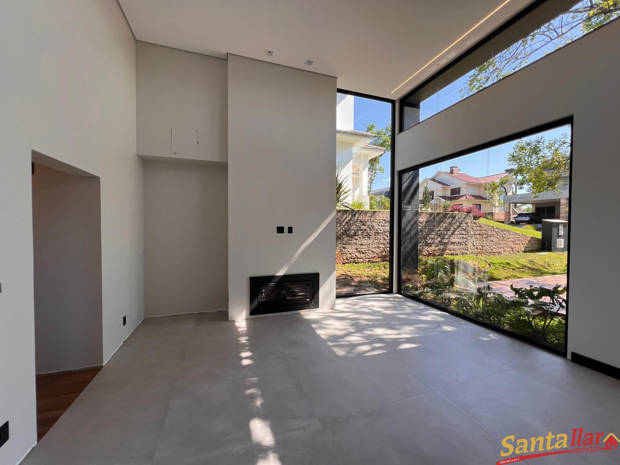 Alvenaria térrea, a casa conta com 03 suítes, sendo uma master, que conta com closet e lavatórios separados, ainda contará com home office e esquadrias de PVC com persianas motorizadas, pé direito duplo na área social, integração interior X exterior com uma grande esquadria que conecta a área de estar/jantar com a área externa, lareira calefatora e calefação direcionada para a área íntima e para emoldurar o pátio central, uma ampla piscina de concreto e garagem coberta para 02 carros, Esquadrias em PVC com persianas motorizadas nos dormitórios, deck de madeira, piso porcelanato na área social e vinílico na área íntima, piso AQUECIDO na área social e na área íntima, forro de gesso e luminárias de embutir inclusas e espera para tomada de carro elétrico. Imóvel sujeito a confirmação de disponibilidade e atualização de valores. VENHA CONFERIR!
