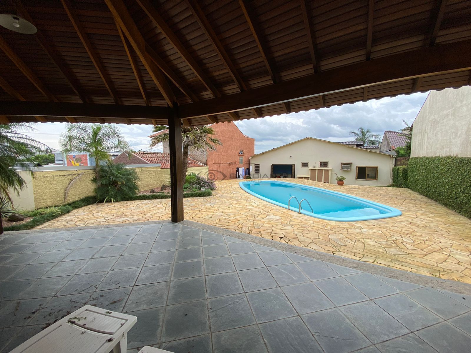 Na parte dos fundos, amplo pátio com piscina e quiosque.