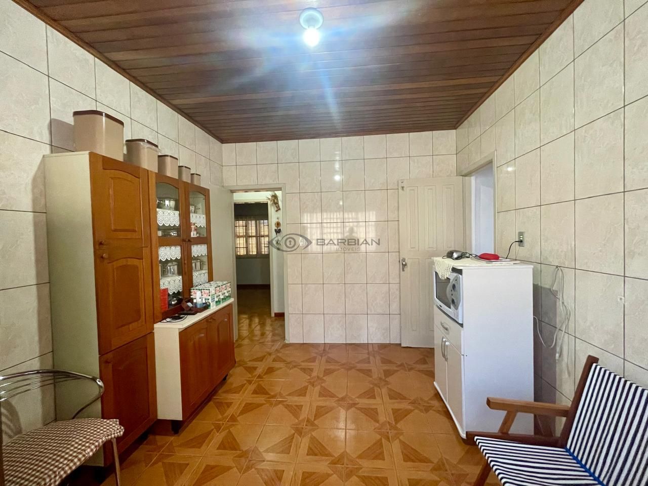 Casa com 3 dormitórios, sala de estar, cozinha, área de serviço separada, 2 banheiros, despensa, espaço gourmet com churrasqueira. Amplo pátio com árvores frutíferas, quintal e espaço para quiosque, piscina, etc.