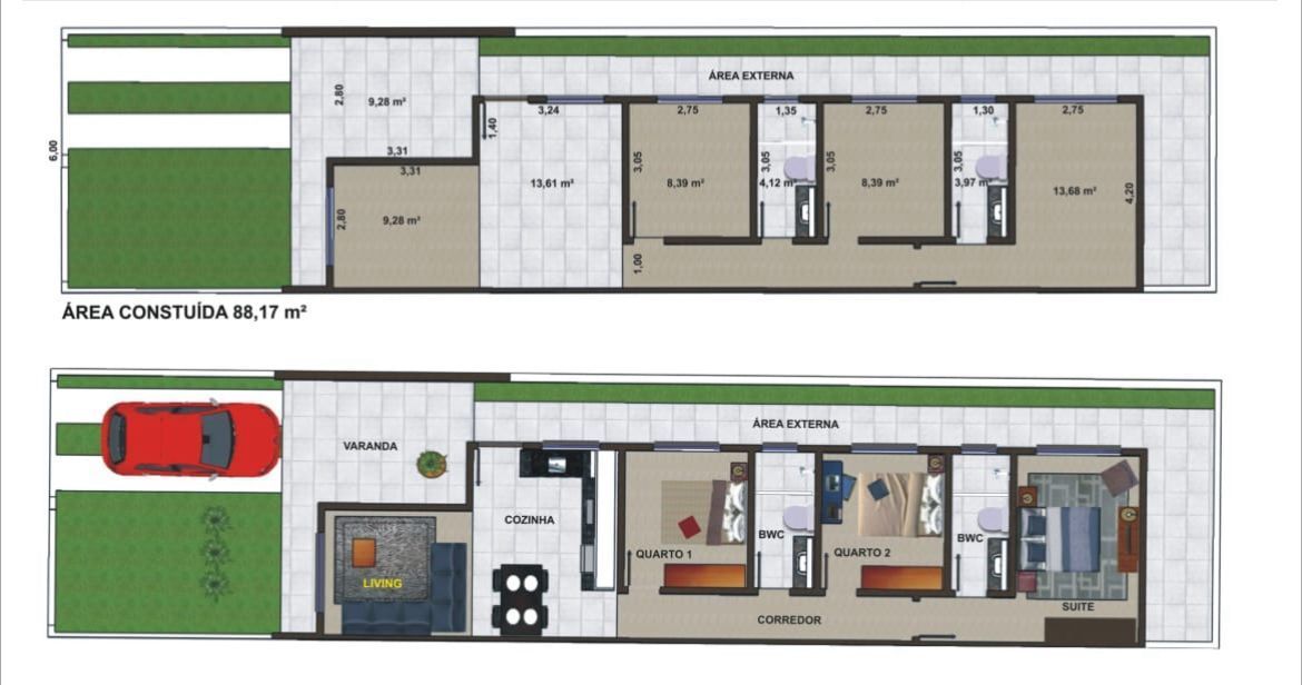 O projeto arquitetônico desta casa em construção foi cuidadosamente planejado para oferecer um ambiente moderno, funcional e acolhedor. Com uma distribuição inteligente dos espaços, cada cômodo foi projetado visando o máximo aproveitamento e conforto, proporcionando uma experiência de moradia única.