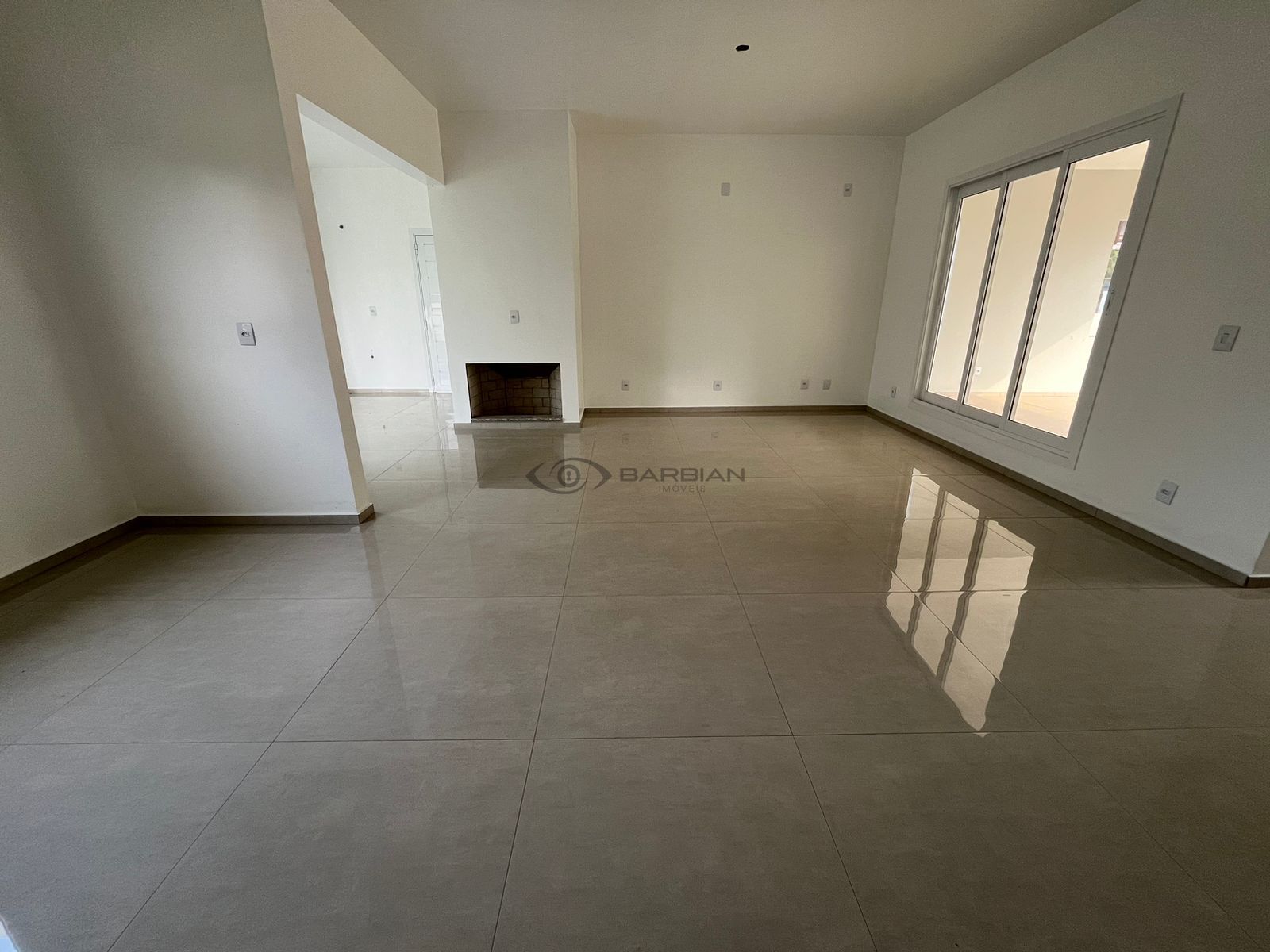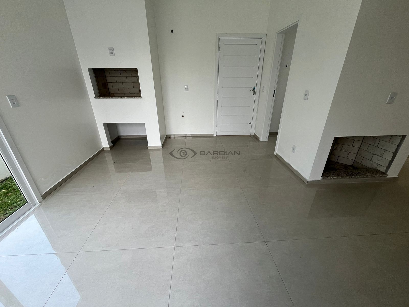 Piso em porcelanato, aberturas em alumínio,