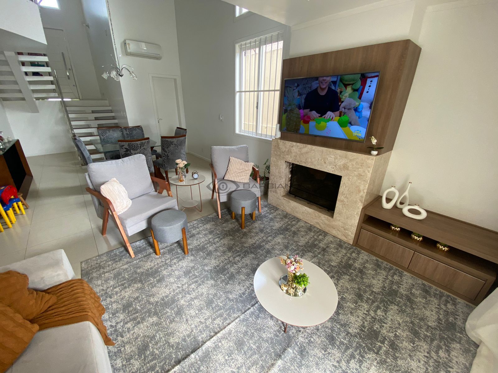 - Sala de estar e jantar com lareira,