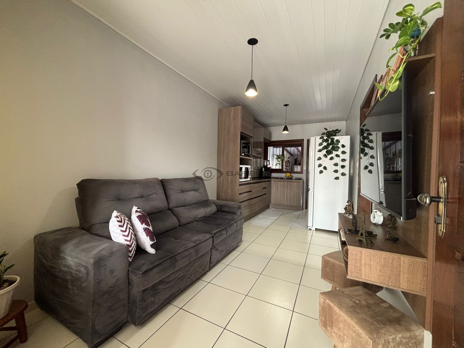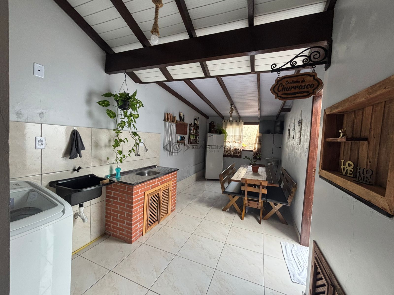Dispõe de 2 dormitórios, sala de estar, cozinha, banheiro social, área de serviço e garagem para até 2 veículos. Conta ainda com espaço gourmet com churrasqueira, pátio fechado na frente e nos fundos, além de portão eletrônico. Permanece no imóvel a marcenaria planejada da cozinha e também do banheiro. Aceita terreno ou chácara de menor valor, sob avaliação.