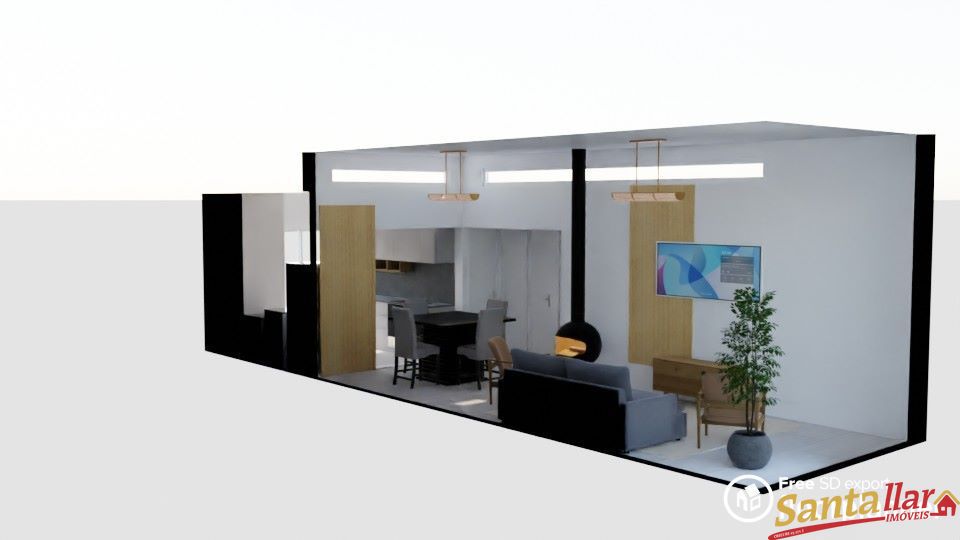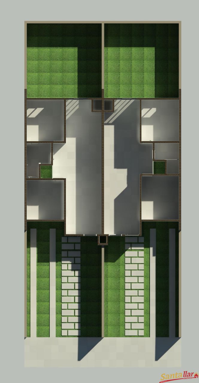 O geminado possui 70 m² de área construída, divididos em 02 dormitórios, sala de estar, sala de jantar e cozinha integradas, banheiro social, lavanderia, churrasqueira e garagem. O geminado ainda possui pátios frente e fundos, todo murado e ótimo padrão de acabamentos, com pisos em porcelanato e aberturas em alumínio.
