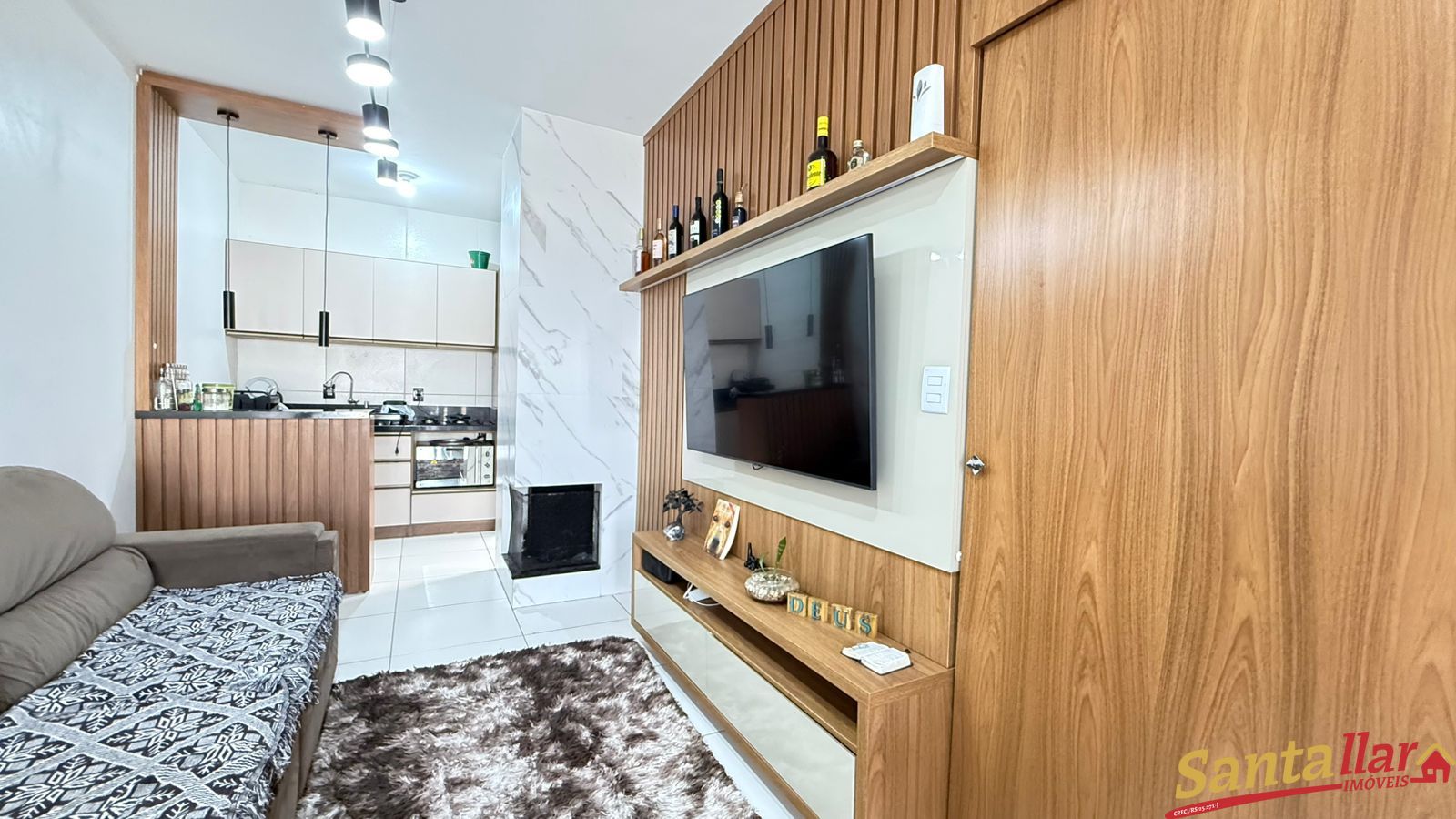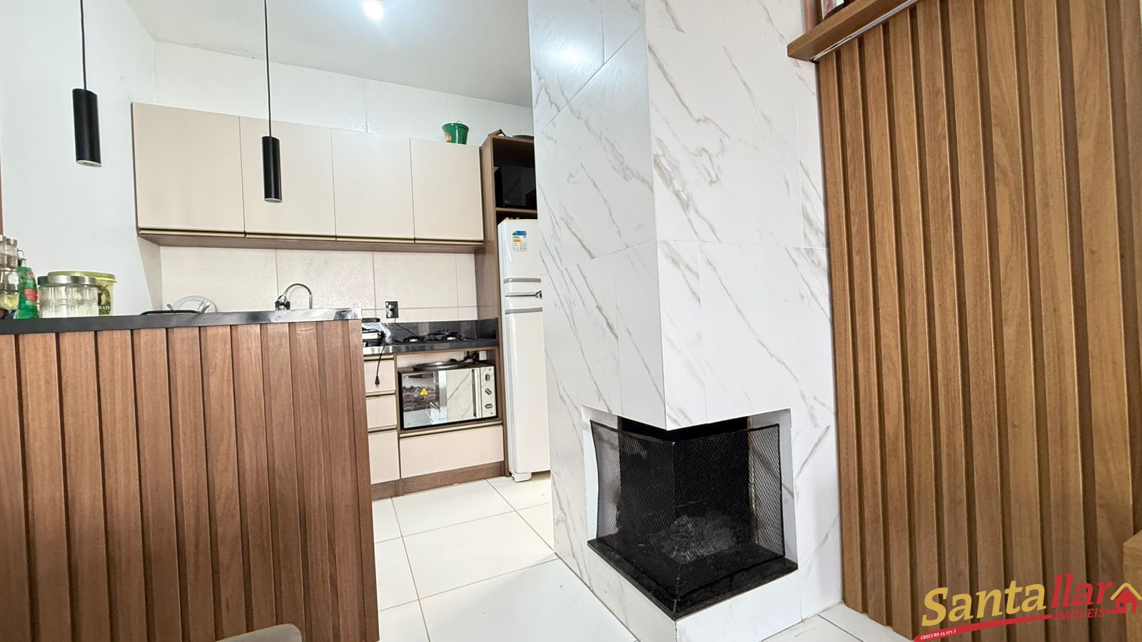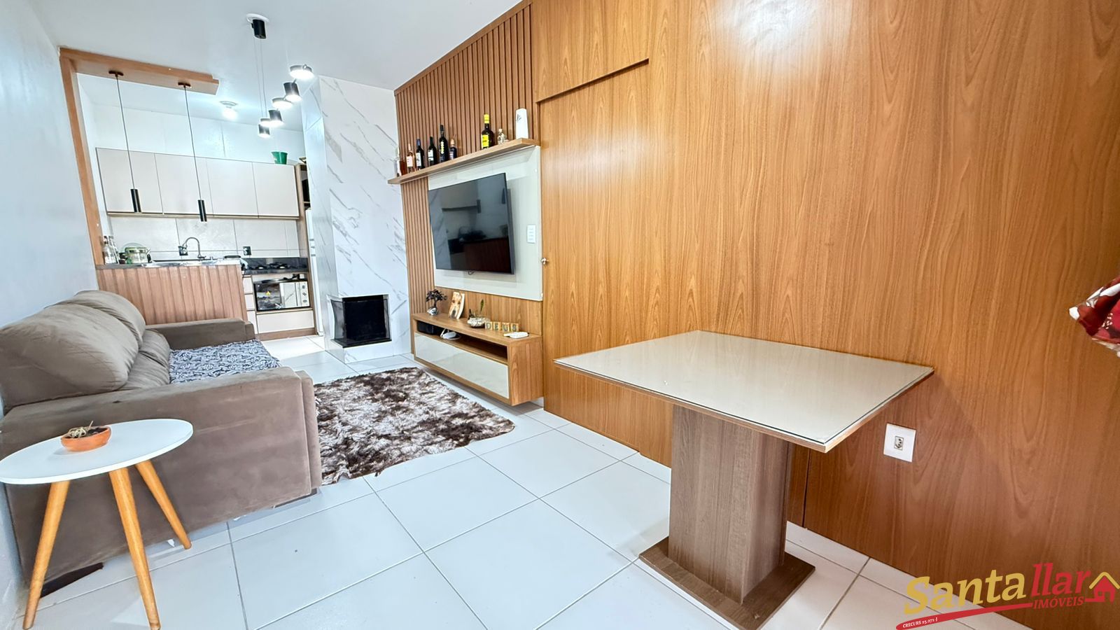 Imóvel possui 02 dormitórios, 01 banheiro, sala de estar, jantar e cozinha conjugada, lareira, lavanderia, uma vaga de garagem. Permanecem todos os móveis projetados, incluindo espaço social, banheiro e cozinha!