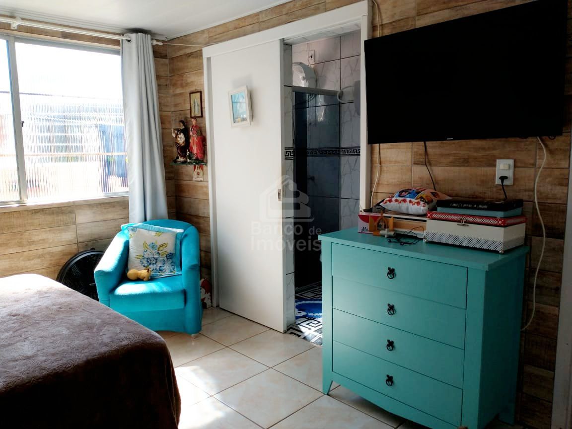 Casa com 3 dormitórios, sendo 1 suíte, churrasqueira, lareira, lavabo, portão eletrônico, banheiro social, garagem com vaga para 2 carros e pátio, localizada na Cohab Santa Marta.