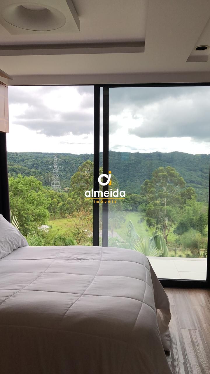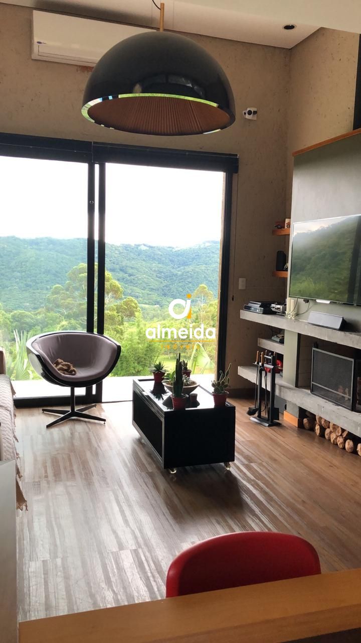 No pavimento superior, amplo espaço integrado com cozinha, sala de jantar, sala de estar (sofá cama para casal) e uma deslumbrante vista panorâmica para o vale de Itaara.