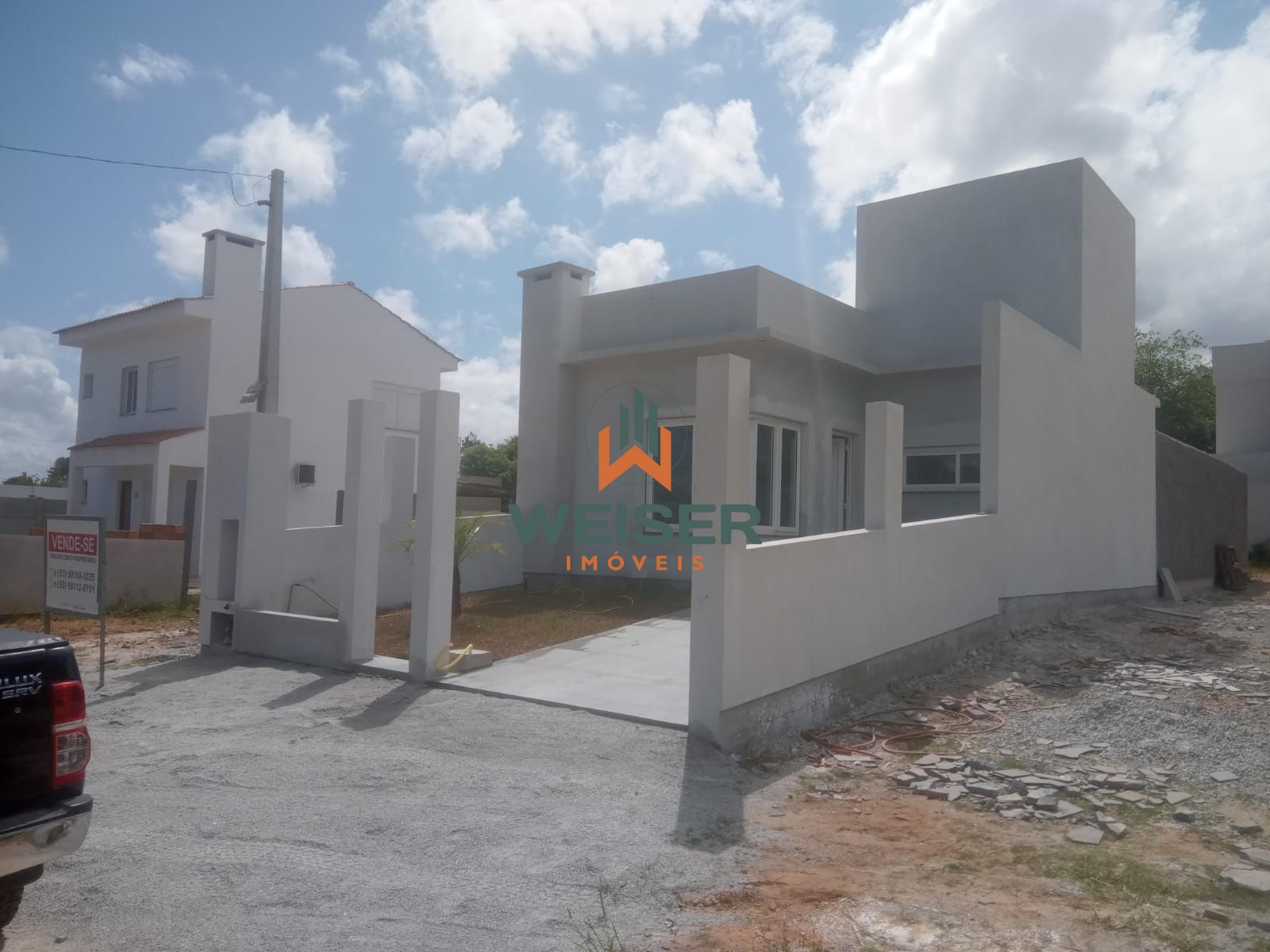 Cod. (100475) - Weiser Imóveis Vende: Casa Nova no Bairro Santo Antônio - Laranjal. O Imóvel oferece: dois dormitórios, banheiro social, sala estar/jantar com lareira, ampla cozinha, área de serviço, espera para água quente, piso em porcelanato, gesso no teto e massa corrida nas paredes. ✅ Vaga de garagem com pergolado; ✅ Alto patrão de acabamento; ✅ Imóvel todo em laje; ✅ Esquadrias em PVC. # Valor: R$ 480.000,00. # Financiável. ✅ O imóvel está em fase de acabamentos, portanto: poderá ser combinado os últimos detalhes antes da entrega! Agende já sua visita através do nosso Whatsapp: (53) 98116-6766 - (53) 99989-1616.