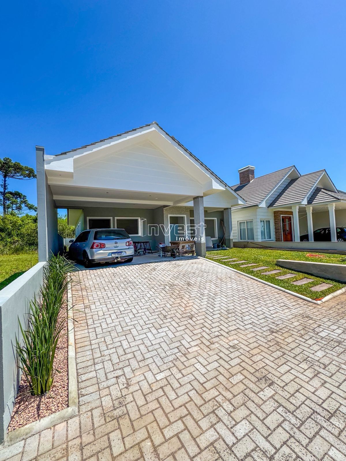 Arquitetura contemporânea, pensada para quem valoriza conforto, luz natural e integração com o pátio. Com projeto em formato “L”, a Casa Araucária foi cuidadosamente implantada para aproveitar ao máximo o nascer e o pôr do sol, garantindo ambientes iluminados, bem ventilados e visualmente conectados ao exterior. A área social conta com abertura de 4m com vista para o pátio, integrando sala de estar, jantar e cozinha — um espaço ideal para criar um verdadeiro refúgio particular, com possibilidade de piscina ou jacuzzi, perfeito para momentos de descanso e convivência. Composição * 3 dormitórios, sendo 1 suíte * Banheiro social * Cozinha com churrasqueira integrada à sala de estar e jantar * Área de serviço independente * Garagem ampla para 2 veículos