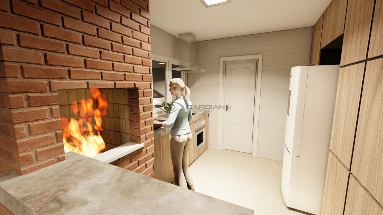 - Cozinha com churrasqueira integrada à sala de estar e jantar;