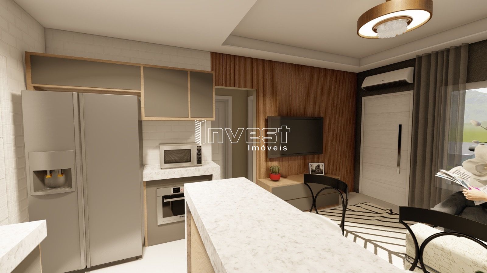 • Ambientes integrados de sala de estar, jantar e cozinha