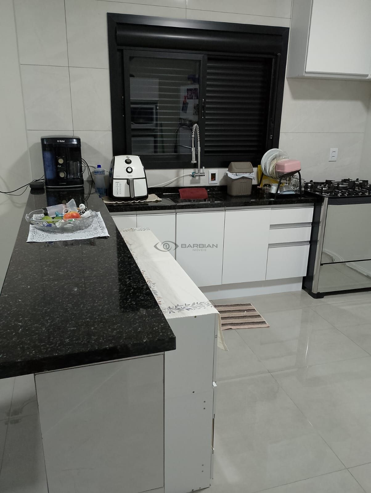 São 131m² privativos contando com 3 quartos (1suíte), 2 banheiros com revestimento em porcelanato, sala de jantar/estar integrados à americana com balcão em granito negro (ultimo tom), área de serviço e churrasqueira em sua parte externa.