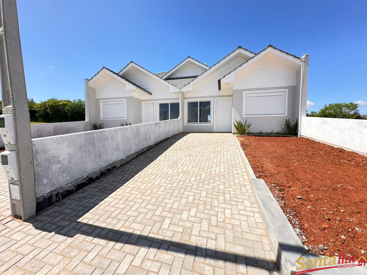 Duas casas lado a lado, com projeto contemporâneo, excelente posição solar norte e vista para o pôr do sol. Um imóvel pensado para quem valoriza, conforto, pátio, funcionalidade e acabamento de qualidade em todos os detalhes. Conta com: * 2 dormitórios, sendo uma suíte, Banheiro social, Cozinha com churrasqueira, sala de jantar e estar integradas, Varanda com área de serviço, Pátio frontal com grama (53,40m²), Pátio fundos com grama (82,07m²), Garagem privativa, Frente norte. Acabamentos selecionados com critério: aberturas em alumínio, portas internas de madeira, rodapés em poliestireno, calçada e rampas em PVS, muros dos fundos prontos e um projeto que alia acessibilidade a um padrão de qualidade superior. Imóvel sujeito a confirmação de disponibilidade e atualização de valores. VENHA CONFERIR!