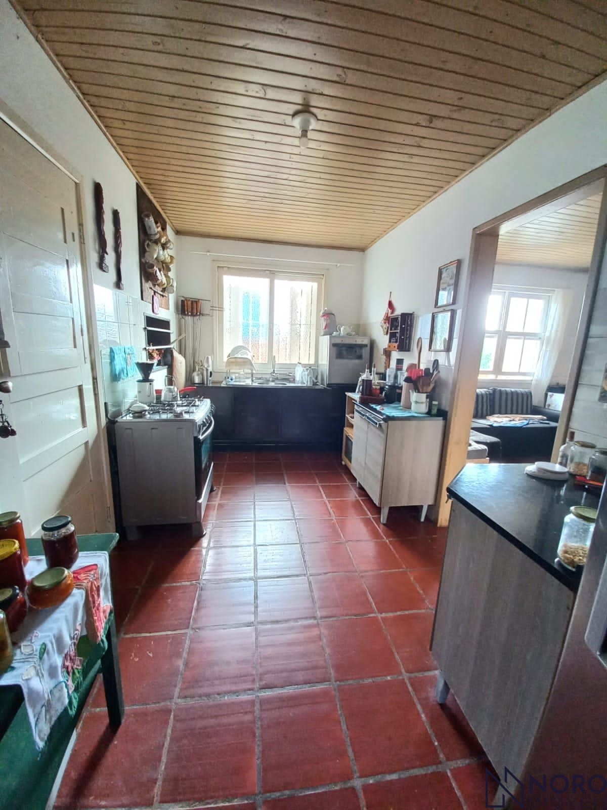 Um dos charmes desta casa é o seu fogão a lenha, que traz um toque rústico e aconchegante ao ambiente, perfeito para preparar deliciosas refeições e aquecer os dias mais frios.