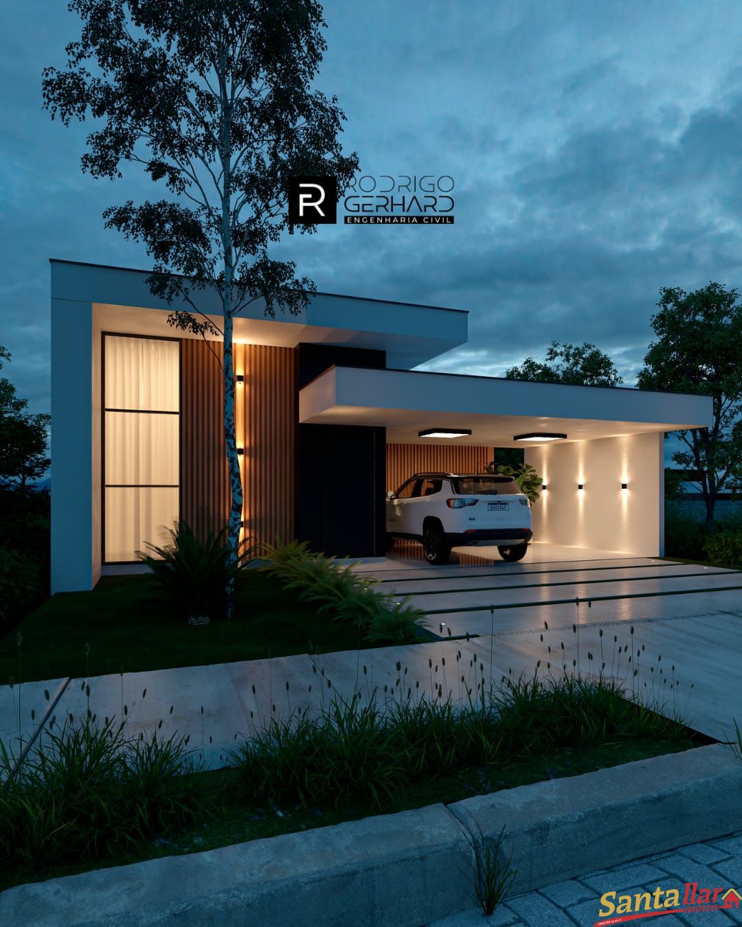 Com uma imponente fachada (parte revestida em ripado de alumínio), um recuo de 6 metros que muito irá valorizar o jardim frente, esse lindo projeto residencial possui um total de 175,01 m2 de área construída, a ser edificada em um terreno amplo de 432 M2 de área (12 x 36).