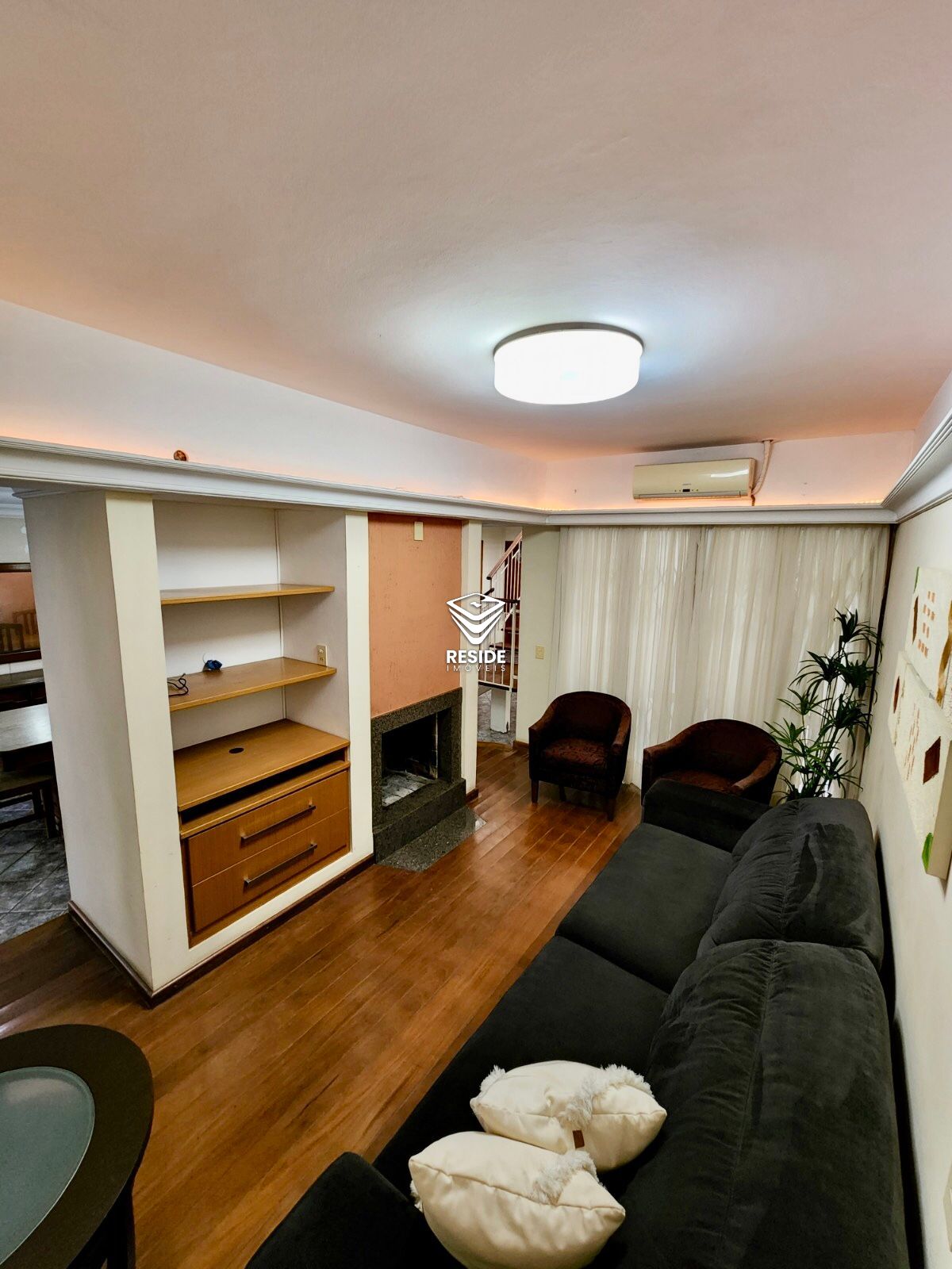 No andar térreo temos uma espaçosa sala de estar e jantar, uma sala aconchegante com lareira, escritório para trabalhar de casa com tranquilidade, cozinha mobiliada e um espaço gourmet com churrasqueira, e para melhorar, um pátio com uma piscina maravilhosa para o conforto da família.