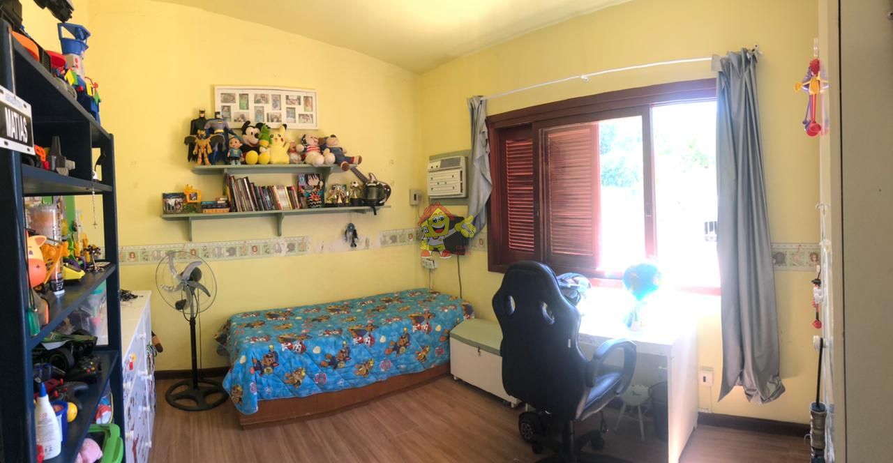 Belíssima casa, com pátio, canil, espaço para instalação de piscina, jardim frontal arborizado, 2 salas, sendo uma com lareira, 3 dormitórios, sendo uma ampla suíte, edícula com churrasqueira, fogão à lenha e pia e uma suíte privativa para receber visitas com toda a privacidade. Garagem para 3 carros. Condomínio particular, tranquilo e seguro. Marque uma visita e descubra o seu novo lar.