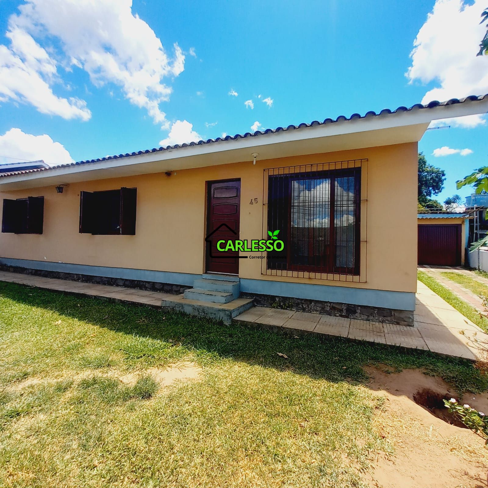 Casa ampla com 4 dormitórios. Casa com 26 anos, feita no estilo reforçada, no capricho. Casa alta, livre de umidade. Quartos bem arejados, projetados para serem banhados pelo sol direto. Sala e cozinha ampla e separadas. Portão de grade na frente, espaço para 4 carros no pátio. Garagem fechada para dois carros. Pátio calçado nos fundos da casa onde se encontra a videira carregada de frutas. Galpão de ferramentaria. Cozinha campeira com fogão de chapa a lenha. Poço artesiano, de alta potência. Piscina com deck, em patamar elevado, excelente para banhos de sol e se refrescar do calor. Pomas com variedades diversas. Horta cercada, com terra adubada, pronta para ser cultivada. Carlesso Corretor de Imóveis. (55)996059636 Creci 49486