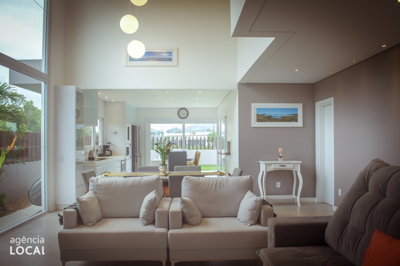 Casa de alto padrão à venda no exclusivo Condomínio Rosa Internacional, anexo ao Surfland, localizada a apenas 3 km da Praia do Rosa, uma das regiões mais valorizadas do litoral catarinense. Um imóvel que combina sofisticação, conforto, tecnologia e lazer completo, ideal para quem busca viver com qualidade de vida, segurança e contato com a natureza. Com 350 m² de área construída em um terreno de 360 m², a residência conta com energia fotovoltaica, iluminação embutida em LED, som ambiente, móveis planejados sob medida e acabamento de alto nível em todos os ambientes. São três suítes, todas climatizadas, sendo uma suíte master com impressionantes 70 m², varanda privativa, cama king size, amplo closet e banheiro com pia esculpida, dois chuveiros e ducha a gás, além de TV Smart 42?. A segunda suíte possui 20 m², varanda, terraço, cama queen size, TV Smart 42?, ar-condicionado e banheiro com pia esculpida e ducha a gás. A terceira suíte conta com 15 m², cama queen size, ar-condicionado e banheiro com ducha a gás. A área social é um grande diferencial, com cozinha gourmet totalmente equipada, churrasqueira, água ionizada, som ambiente, geladeira side by side e adega climatizada. A sala de jantar integra-se a um elegante jardim de inverno, enquanto a sala de estar oferece lareira e TV Smart LED de 75?, criando um ambiente acolhedor e sofisticado. Na área externa, o imóvel dispõe de um charmoso pergolado com sofás de rattan, parrilla e redário, além de um exclusivo spa com piscina aquecida no jardim da casa. A residência possui estacionamento coberto para dois veículos e está inserida em um condomínio com portaria e segurança 24 horas, garantindo total tranquilidade. O Condomínio Rosa Internacional oferece uma estrutura de lazer completa em estilo Club House, com piscinas adulto, infantil e aquecida (coberta e com raia), spa, saunas, academia Reebok Fitness Center, quadra de tênis, quadra poliesportiva, campo de futebol, pista de caminhada, playground, brinquedoteca, espaço kids, pet place, redário, cinema, salão de jogos, salão de festas com espaço gourmet, quiosques com churrasqueira, lago artificial, estacionamento para visitantes e sistema viário com pavimentação permeável. O proprietário estuda propostas. Uma oportunidade única para quem busca um imóvel de alto padrão próximo à Praia do Rosa, com infraestrutura completa, conforto e exclusividade. Entre em contato e venha se encantar com seu novo lar.