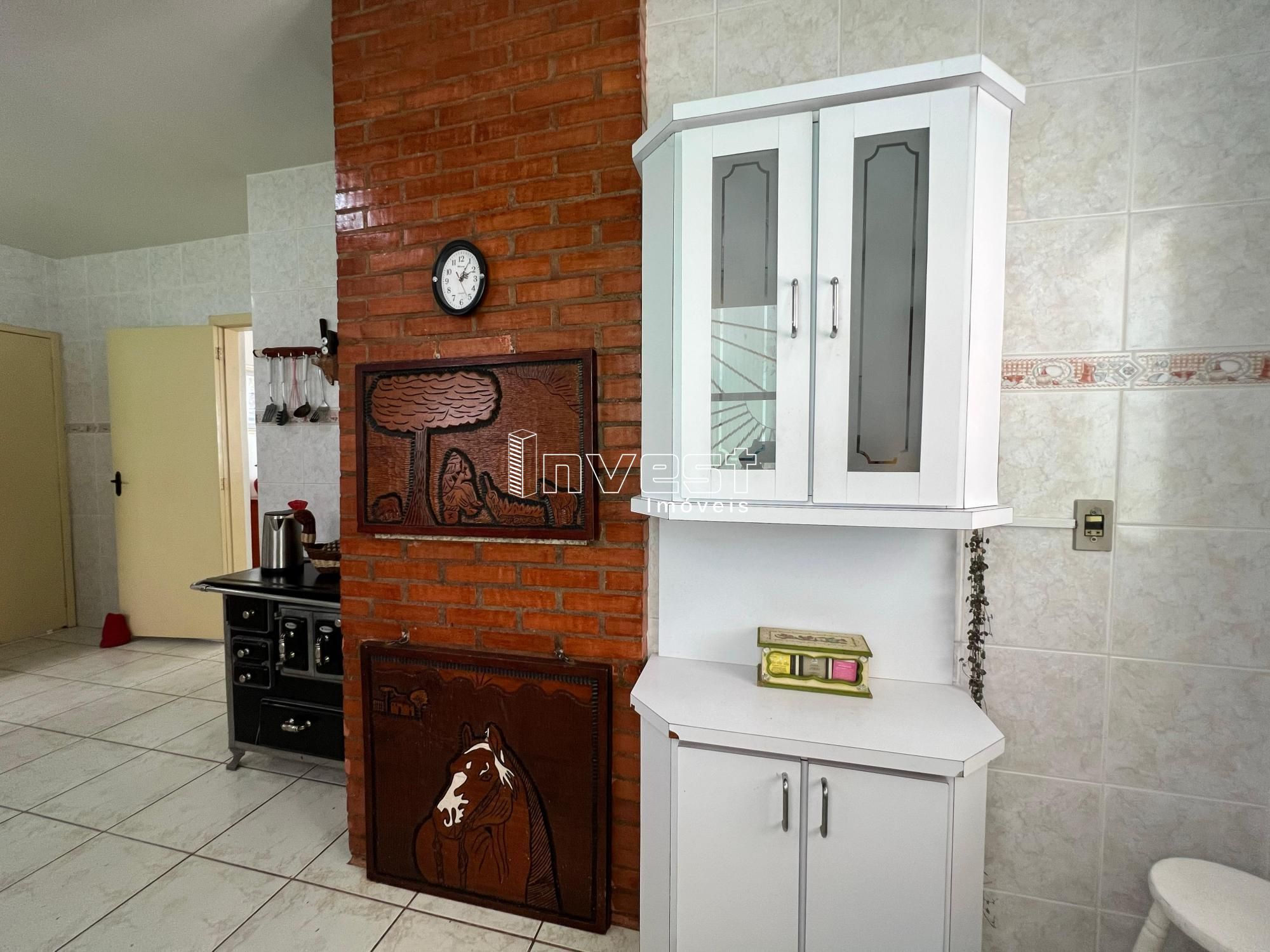 Com 796,80m², sendo a casa principal com 3 dormitórios (sendo um suíte), sala de estar/jantar com lareira, cozinha com churrasqueira interna, área de serviços e banheiro social.