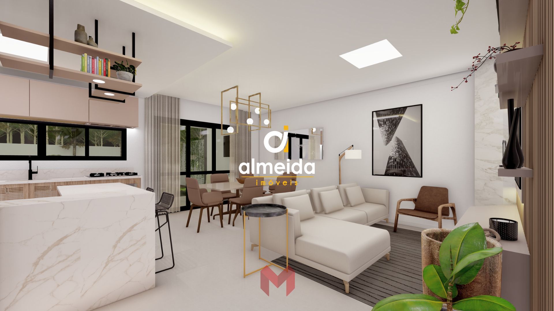 Living integrado (Sala de Estar, Sala de Janta e Cozinha)