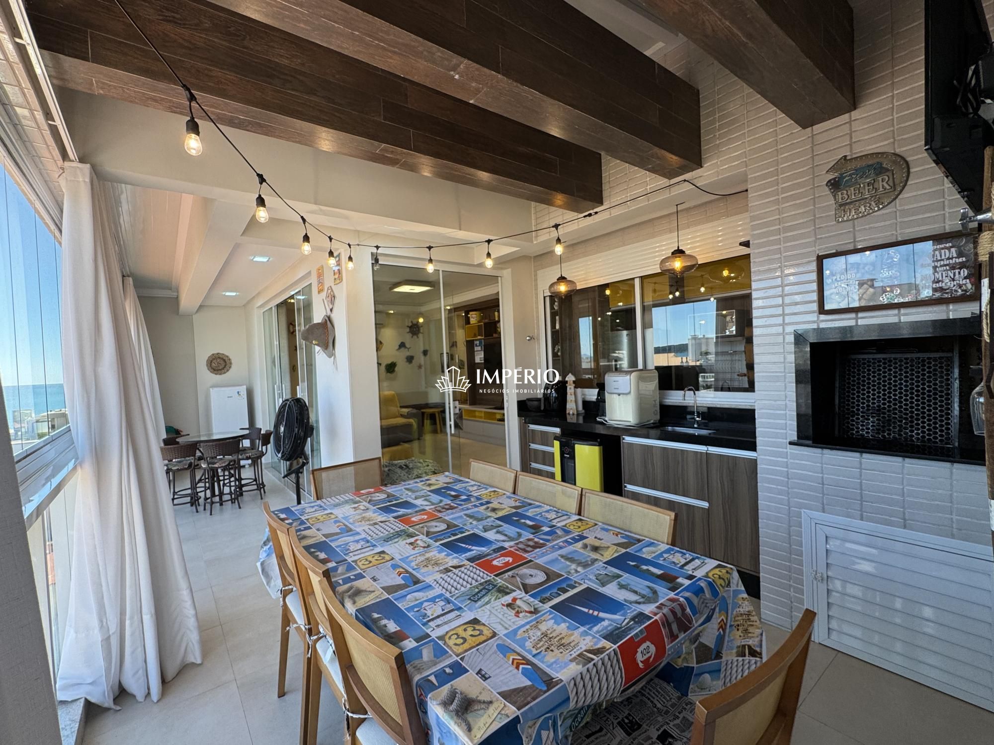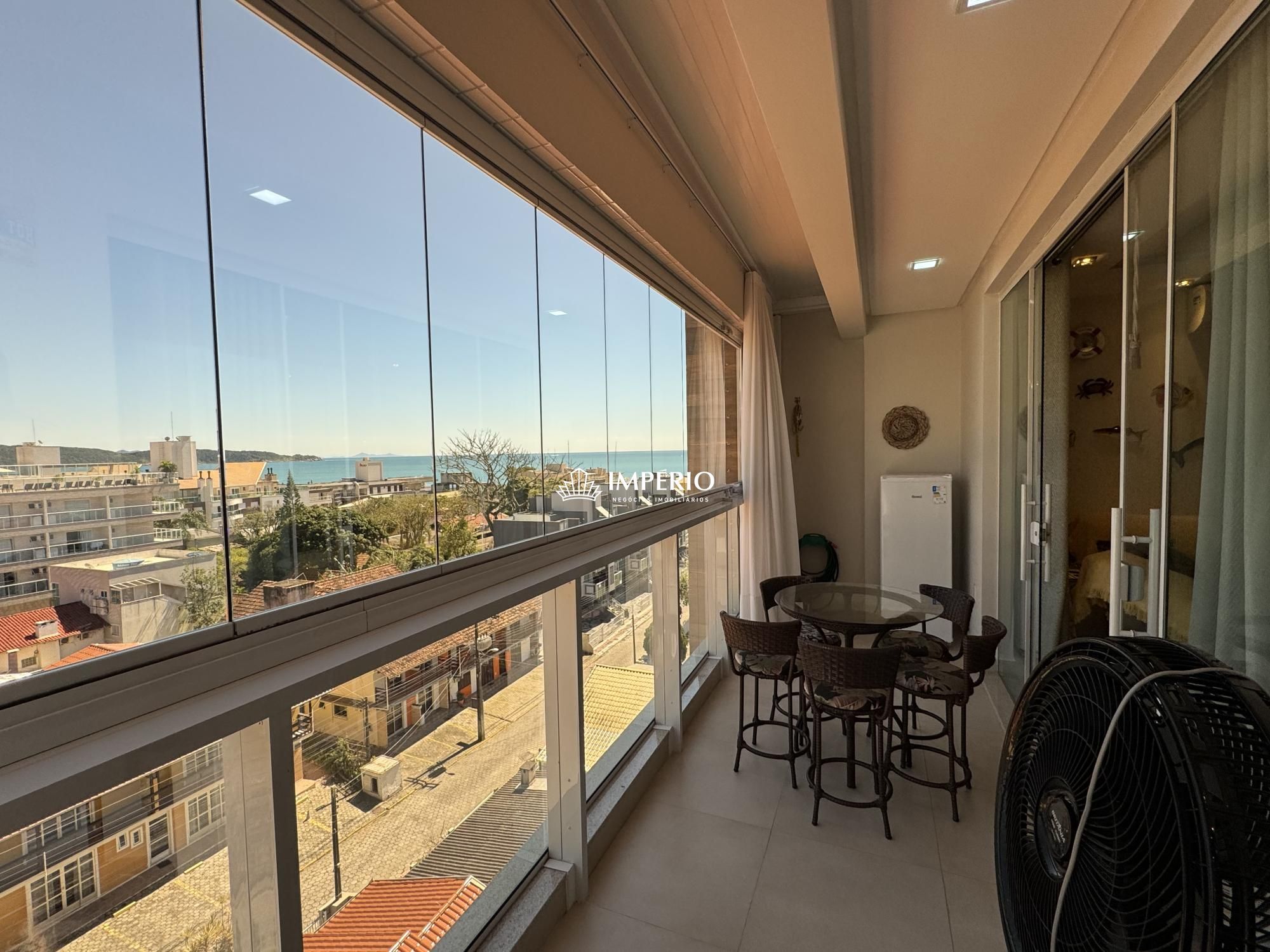 Cobertura ampla com 3 quartos, sendo duas suítes e um quarto comum com banheiro auxiliar no duplex inferior, na área superior sala climatizada com televisão, lavabo auxiliar, varanda com fechamento em reiki e uma incrível vista mar, excelente localização há 170mts da avenida principal do centro de Bombinhas, prédio com área de lazer completa com piscina e academia, cobertura com excelente rentabilidade com locação de temporada.