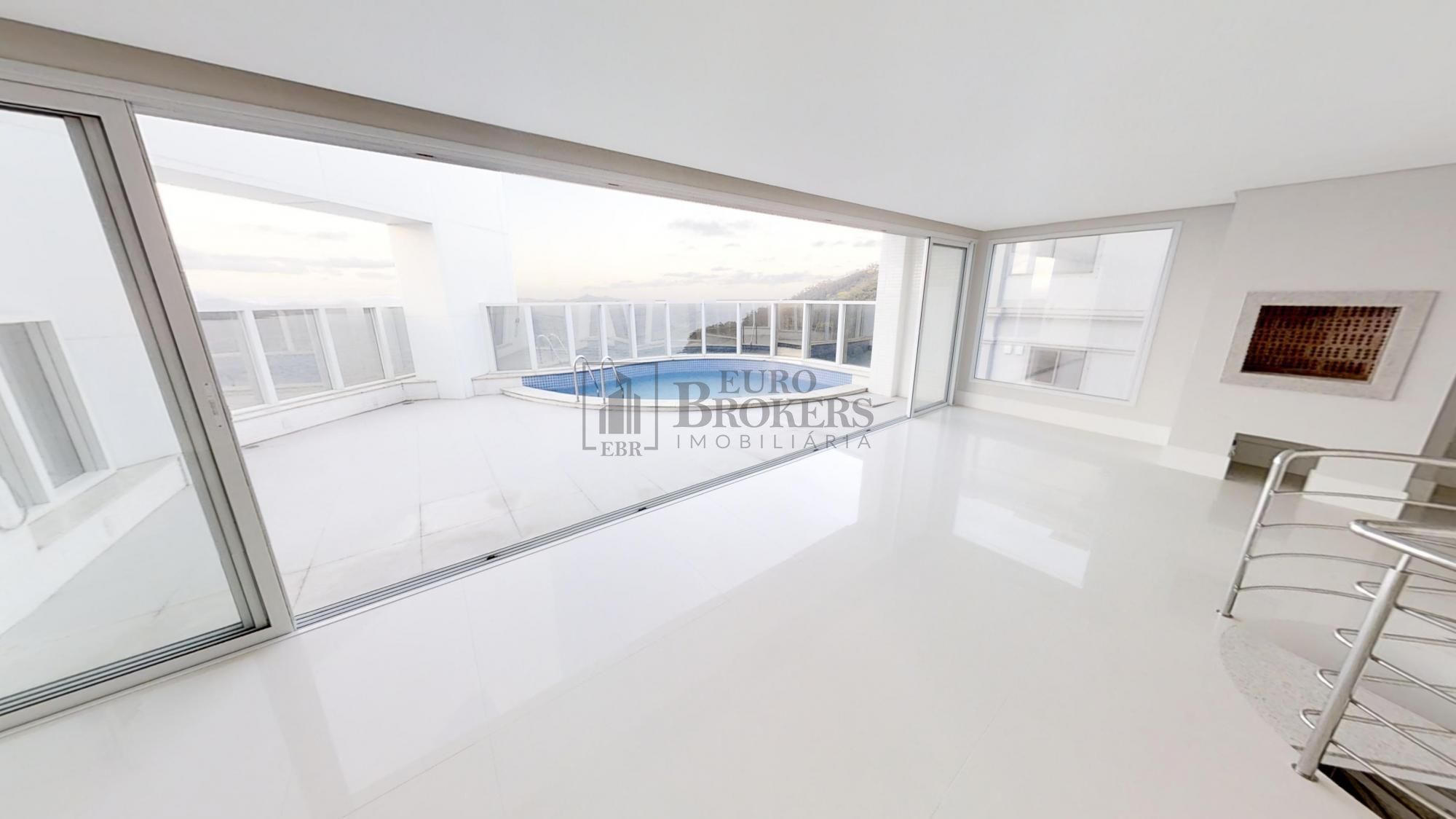 A cobertura duplex possui uma belíssima vista panorâmica do mar. O 1º pavimento conta com 4 suítes sendo 1 Master (com sacada, hidromassagem e closet), ampla sala com pé direito alto, lavabo, cozinha, área de serviço e dep. de empregada. O 2º pavimento possui 2 suítes sendo 1 Master (com sacada, hidromassagem e 2 closet ), amplo ambiente para sala de jogos ou living, espaço gourmet com churrasqueira, área de festas, piscina embutida no chão, 1 banheiro para piscina e 5 vagas de garagem.
