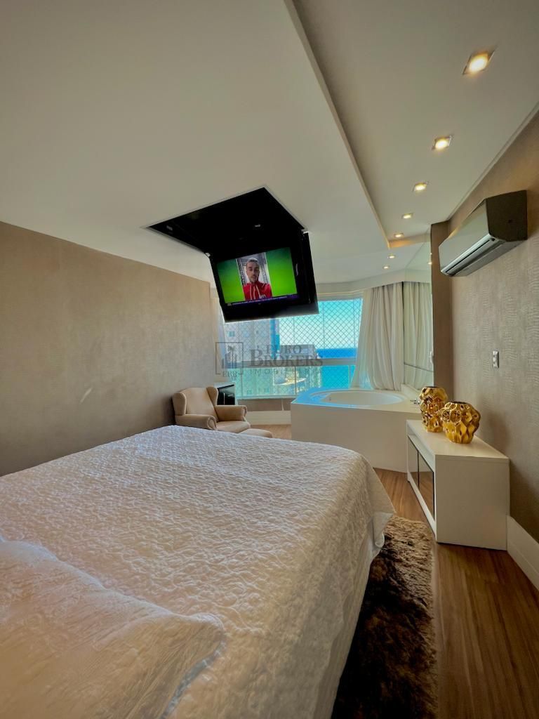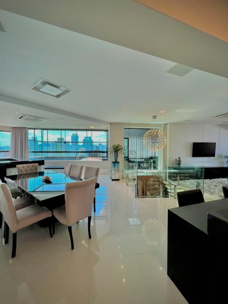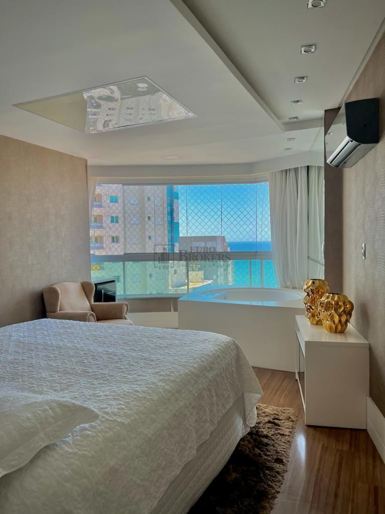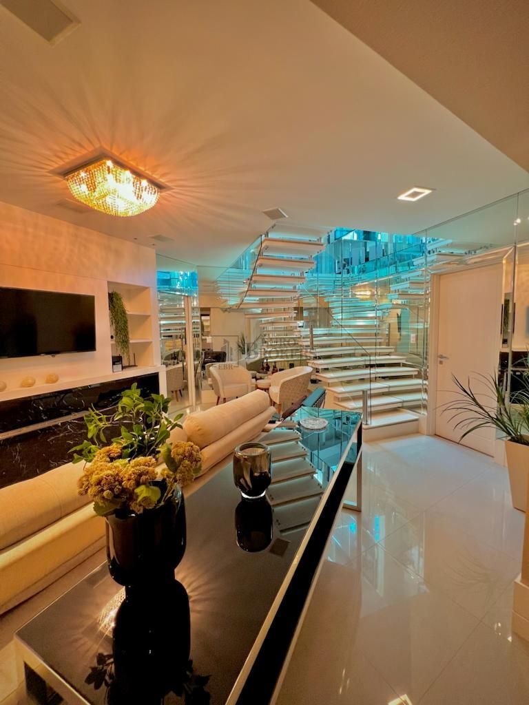 Harmonizando aconchego, privacidade e modernidade, esta linda e exclusiva cobertura com aproximadamente 300 m² privativos e 477 m² de área total se destaca pelo lindo ambiente open concept. A perfeita sintonia dos espaços gourmet, bar, churrasqueira e piscina aquecida fazem você se sentir como se estivesse em uma espaçosa casa moderna, com destaque para o ar-condicionado e som embutido no teto e as cortinas automatizadas, que facilitam a abertura para este que será o novo cenário de sua vida: a linda vista do mar da Barra Sul de Balneário Camboriú. O primeiro andar conta com um grande espaço privado composto pela sala, que faz a conexão perfeita entre as 4 suítes desta linda cobertura. O destaque vai para a master suíte, com um amplo espaço, TV retrátil embutida no teto, hidromassagem e claro, uma linda vista da cidade. O duplex conta, ainda, com 5 vagas de garagem de fácil acesso para carros baixos e caminhonetes. O condomínio está a 150 metros da orla e conta com uma infraestrutura completa: sala de jogos, espaço gourmet, cinema, academia, hidromassagem, brinquedoteca e uma linda piscina. Gostou do imóvel? Entre em contato: (47) 99290-0795