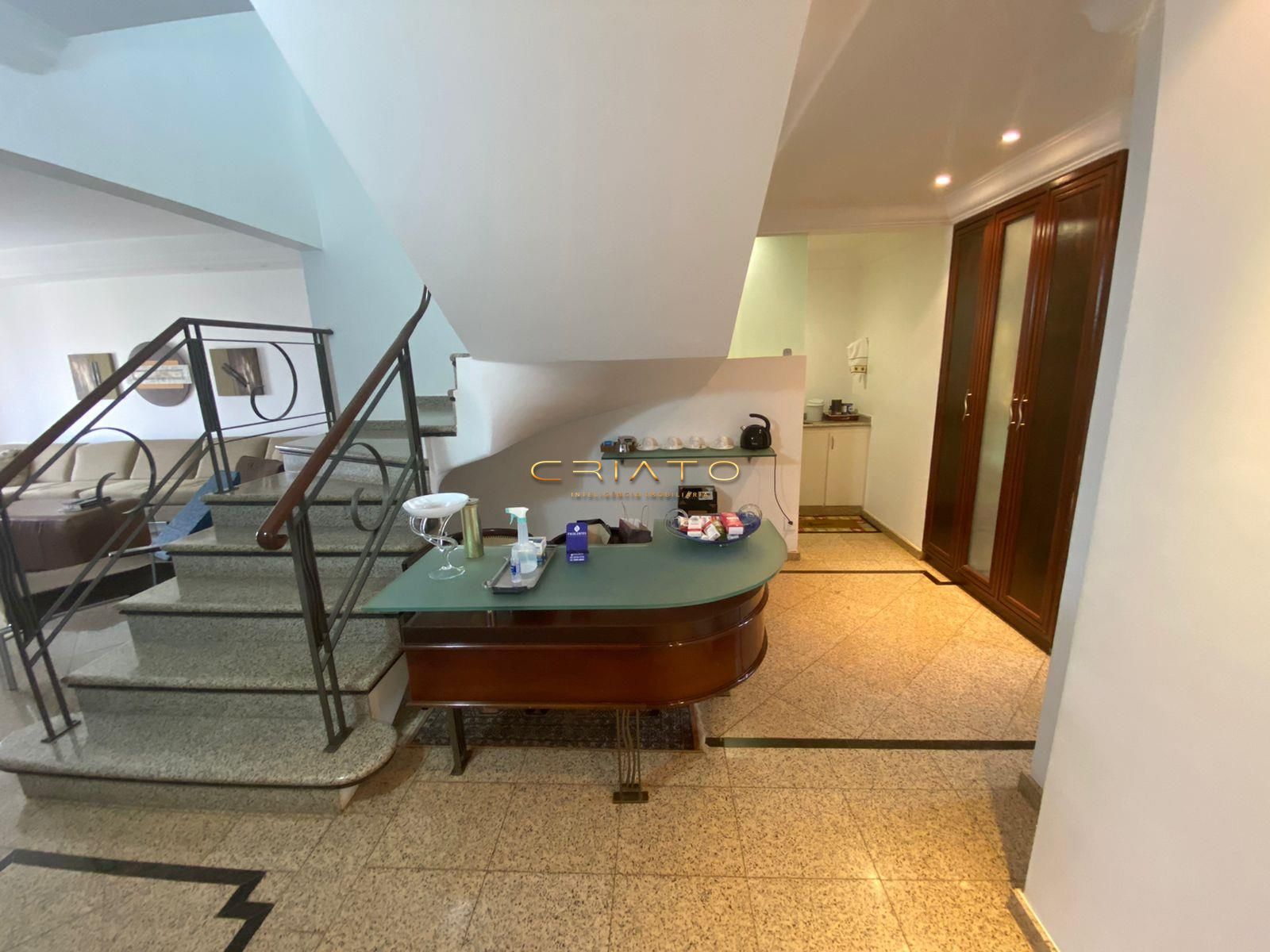 PISO INFERIOR: Sala de TV com sacada Copa auxiliar completa em armários 3 suítes plenas, todas com piso em madeira completa em armários Suíte máster com sala de estar, closet e banheiro com pia dupla Área de serviço completa COBERTURA: Sala em 3 ambientes com sacada Área gourmet com hidromassagem e TV Lavabo Cozinha completa em armários Quarto de empregada Despensa LAZER: Salão de festas Piscina com hidromassagem Sauna Churrasqueira Quadra poliesportiva Academia