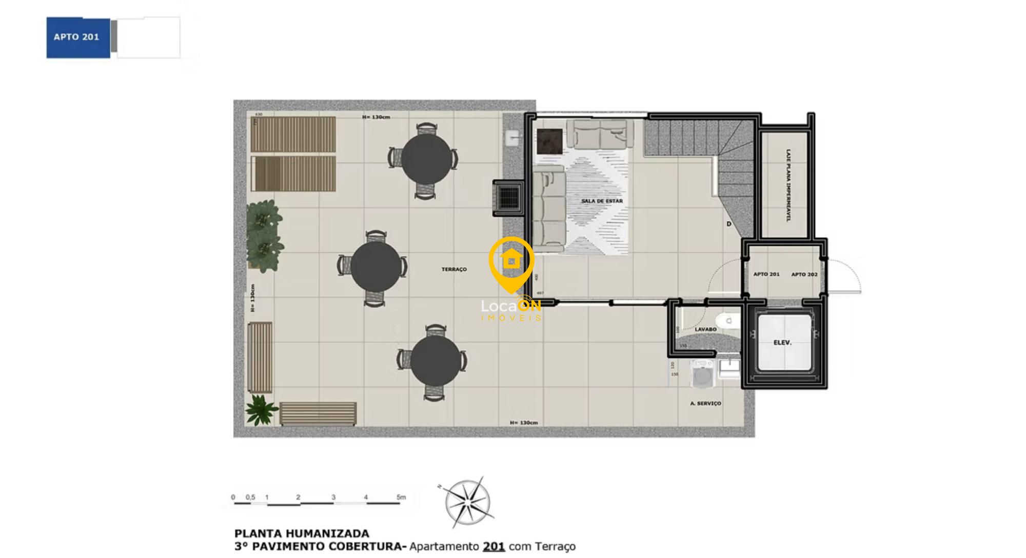 Terraço espaçoso ideal para receber amigos ou relaxar ao ar livre