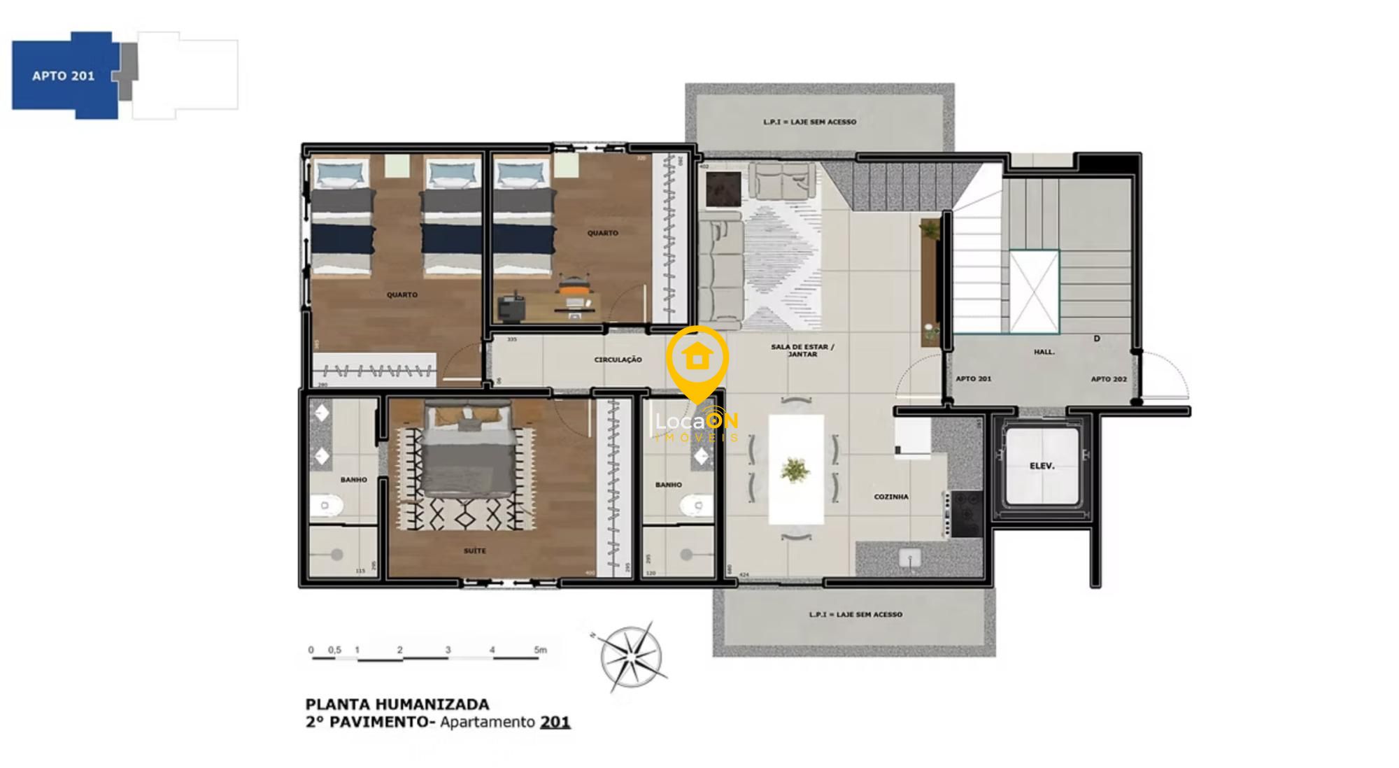 3 quartos, sendo 1 suíte