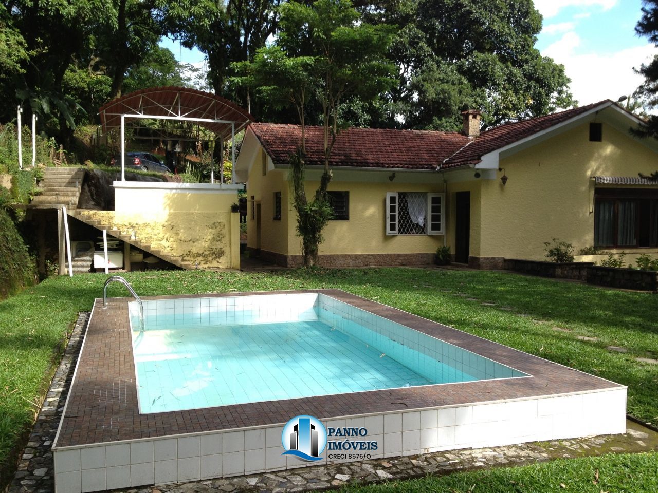 Casa em estilo Suíço 1929 preservada com Sala com pé direito alto e lareira e pedra, 3 quartos ( com ar condicionado) e banheiro original, cozinha e copa Na área de externa grama e piscina com área de churrasqueira completa (churrasqueira/forno/fogão). Nascente de água "esmeralda" contempla o local área de lazer externa, quarto de ferramentas, casa de caseiro, 2 acesso ao sitio, sótão com fácil acesso e orquidário e o melhor uma vista de toda a serra de Petrópolis indevassável Lindo e amplo sítio em meio a Mata Atlântica em Duque de Caxias, divisa com Petrópolis. Acesso via BR-040, subida da serra Rio-Petrópolis, muito sossegado e vista deslumbrante, com 18 min de distância de carro até Petrópolis e 14 min até o distrito de Xerém. Local com água própria (mina/fonte de água cristalina e pura), alimentação elétrica trifásica, terreno arborizado, com árvores e com árvores ou arbustos de flores. O terreno de ~ 3.300 m2 (de altos e baixos) abriga duas casas, uma principal (parte alta) e outra denominada do caseiro (parte baixa), mas esta pode ser usada para outro fim. Existem acessos independentes. -***1 casa de alvenaria (parte baixa, casa do caseiro) na parte baixa, com 2 dormitórios, 1 sala, 1 banheiro, 1 cozinha, 1 área de serviço, num total de 80 m2 construído. incluindo 2 garagens, sendo 1 coberta (para 1 carro) e outra não (para 1 carro), com portões e fechaduras. - ***1 casa de alvenaria na parte alta a ~ 300 m da entrada da parte baixa, subindo a rua (conexão interna entre as casas também é possível por meio escadaria de alvenaria), num total de ~ 300 m2 construído, com 3 dormitórios, 1 sala ampla (com lareira) e conjugada a copa, 1 banheiro, 1 cozinha, 1 área de serviço, 1 dormitório externo (suite), 2 banheiros externos (concebidos para o suporte da área de lazer), 1 quarto externo para dispensa e demais. Todos os dormitórios possuem condicionadores de ar do tipo split. Além disso, na parte alta, temos 2 garagens, 1 coberta (3 carros) e outra não (6 carros), com portões e fechaduras. Inclui ainda 1 área de lazer (ao lado da casa principal), com ~ 200 m2 entre gramado, 1 piscina (4,5x7,5x1,6 m entre largura, comprimento, profundidade) ambos descobertos, e 1 área construída de alvenaria e coberta (~70 m2) contendo churrasqueira, entre outros espaços/áreas. Ligue e agende uma visita! Contato: Tel. 21 3939-0008 / 21 97595-1008 https://www.pannoimoveis.com.br/