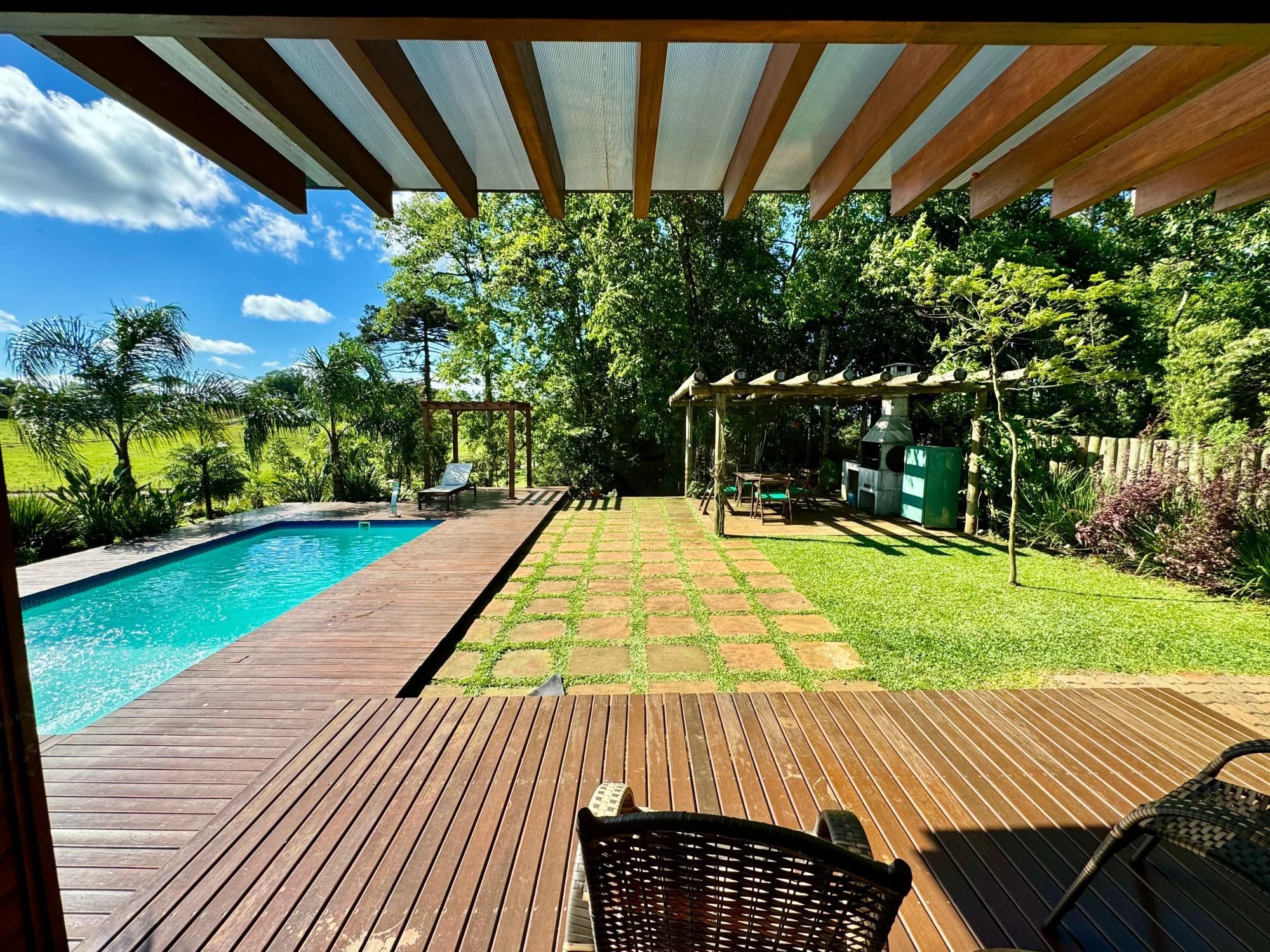 Propriedade com características e estilo únicos! Chácara localizada a 10 minutos do centro de Santa Cruz do Sul, acesso asfaltado. 03 dormitórios (01 suíte), Sala de estar com lareira, Sala de jantar, cozinha estilo americano, área de serviço, lavabo, piscina aquecida. Vista panorâmica. Permanecem todos os móveis planejados, placas solares, decoração, vasos com plantas. Aceita permuta por imóvel de menor valor, veículo; estudam propostas. Valor da área total: R$1.700.000,00 Valor da casa e pátio: R$1.400.000,00