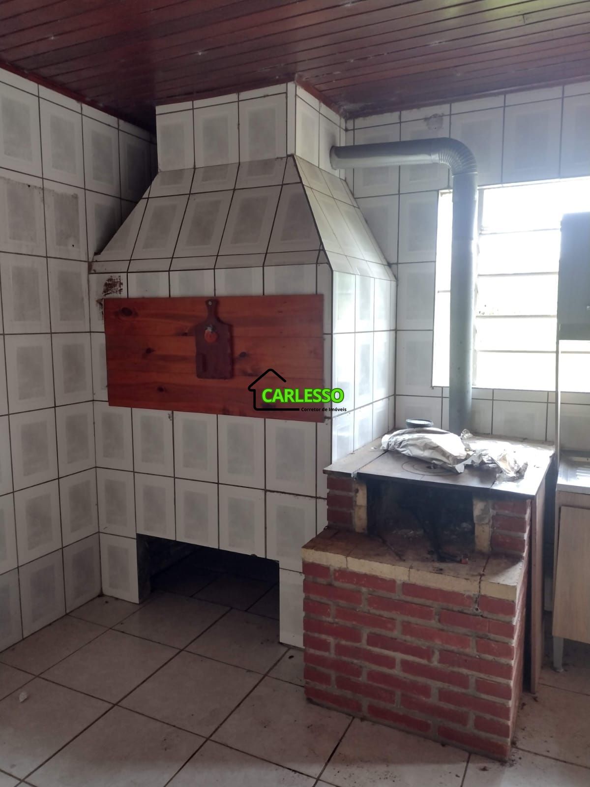 Garagem fechada para 3 carros, com forno de barro.