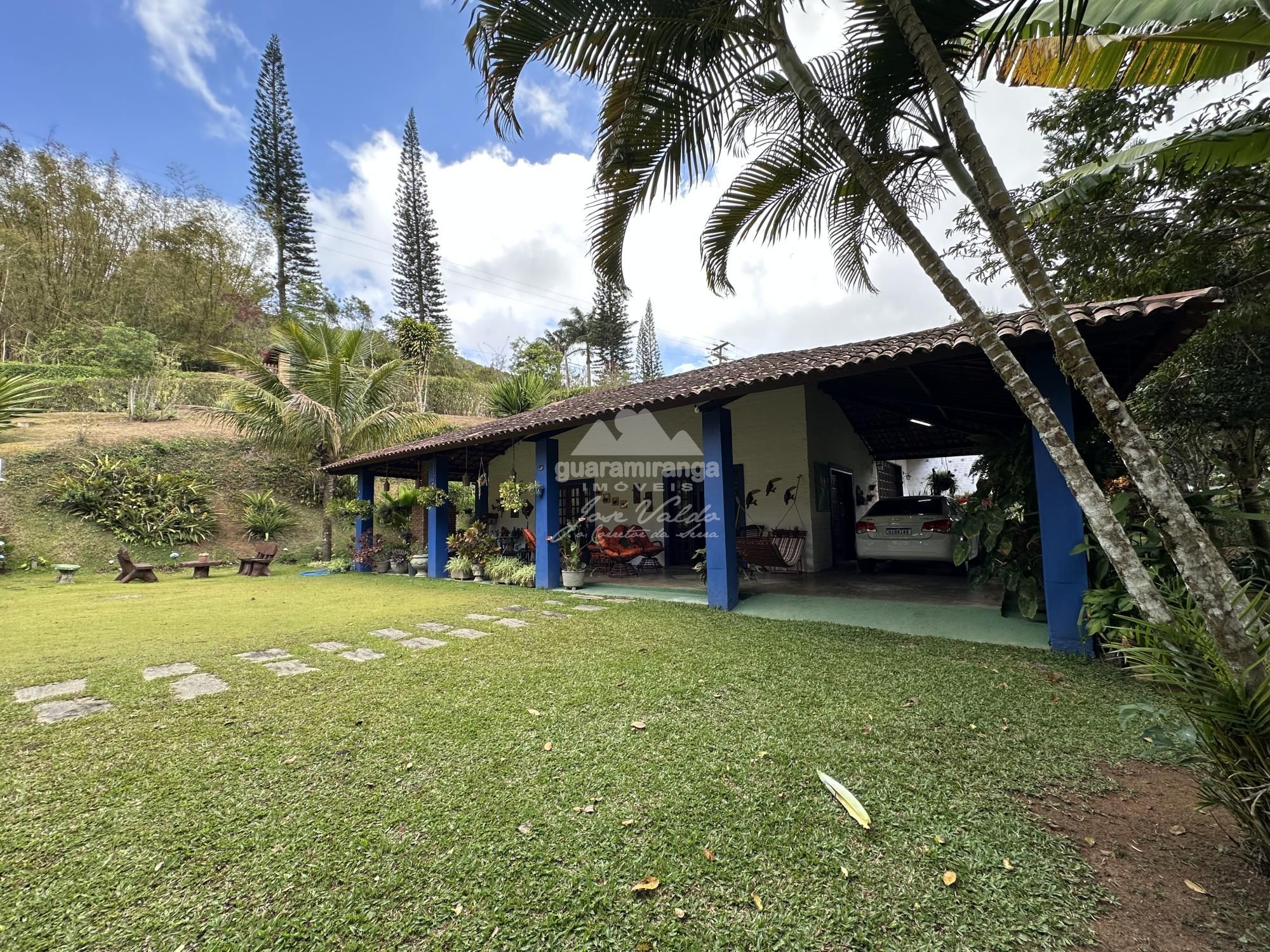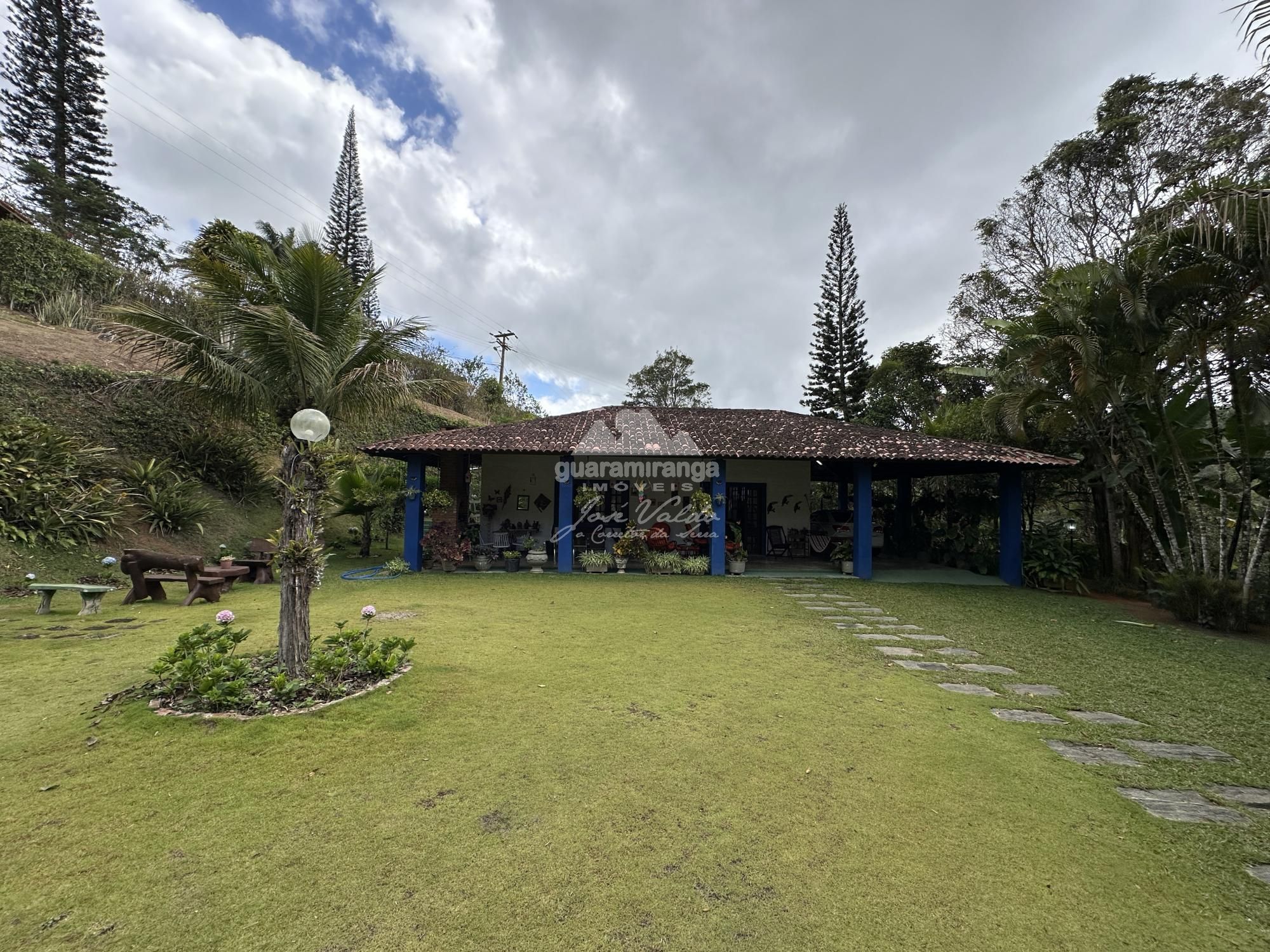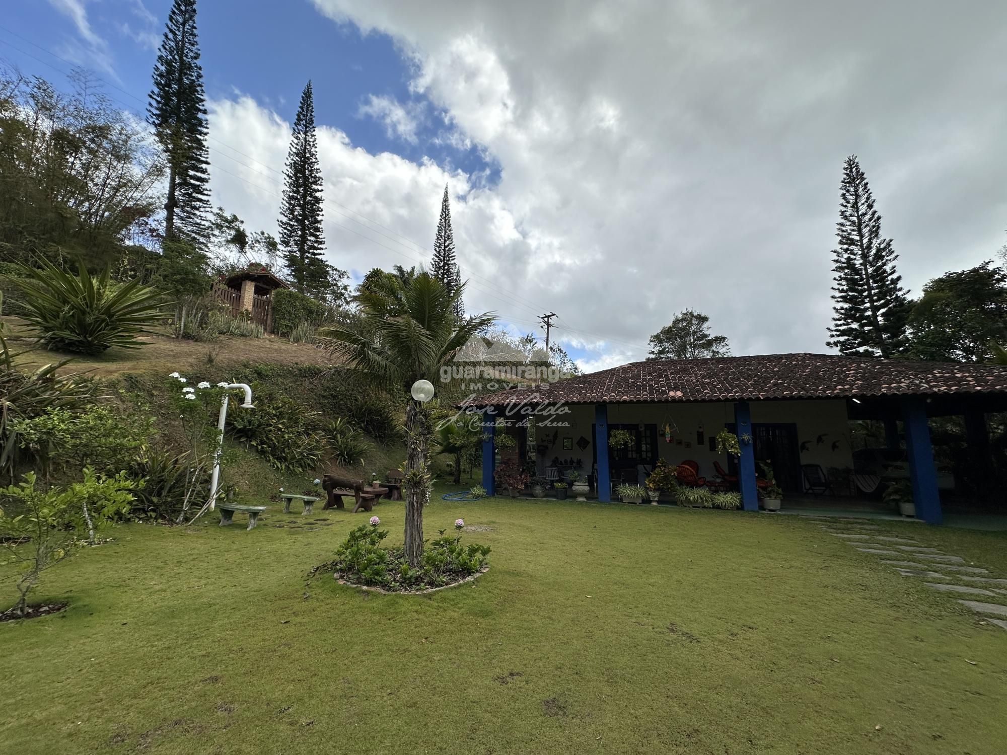 CLIQUE EM "VÍDEOS" | RANCHO VERDE | GUARAMIRANGA Área do terreno: 1 hectares Área construída casa: 430m² Área do deck: 30m² Altitude: 888m Documentação: Matrícula e escritura publica. Casa possui varanda em L com churrasqueira, sala de estar agregada a sala de jogos, sala de jantar, banheiro social, 4 quartos (3 suítes), cozinha americana, despensa, área de serviço e suítes para dependência de secretaria. Fibra óptica. Sinal de telefone. Dois poços, sendo um artesanal e outro profundo com vasão de 4.000L/H. Localização em uma região com total conexão com a natureza, a 5.3 km do centro sendo 2,4 km de calçamento. ☎ Agende sua visita pelos telefones: (85) 98744-8001 / (85) 99864-8001 / (85) 98685-9164.