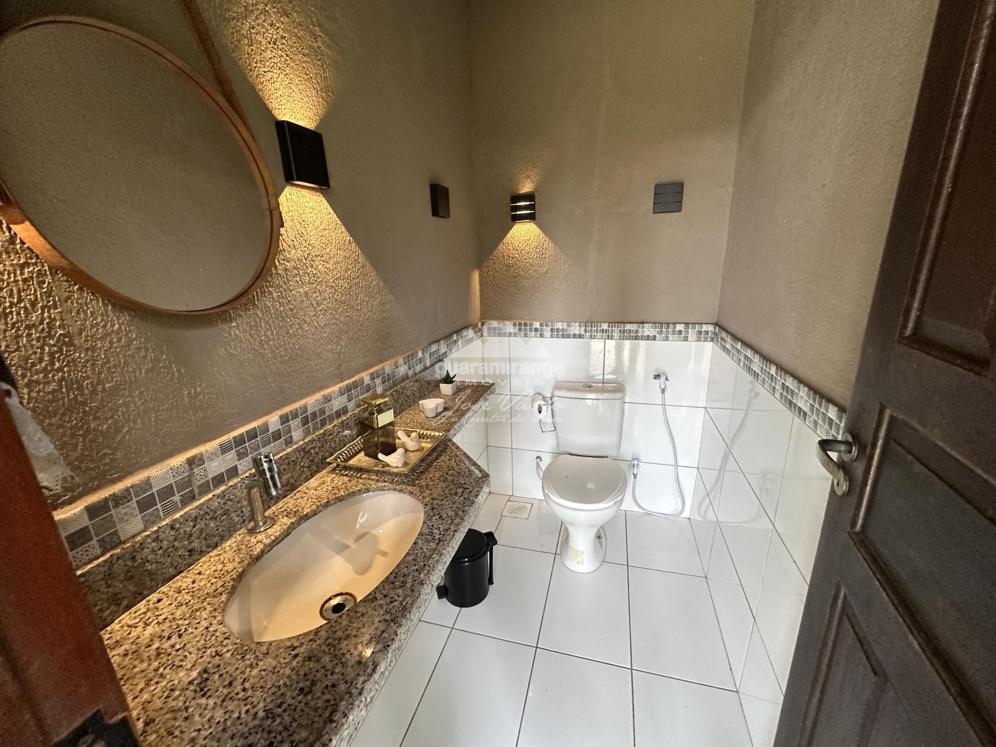 Casa possui varanda em L com churrasqueira, sala de estar agregada a sala de jogos, sala de jantar, banheiro social, 4 quartos (3 suítes), cozinha americana, despensa, área de serviço e suítes para dependência de secretaria.