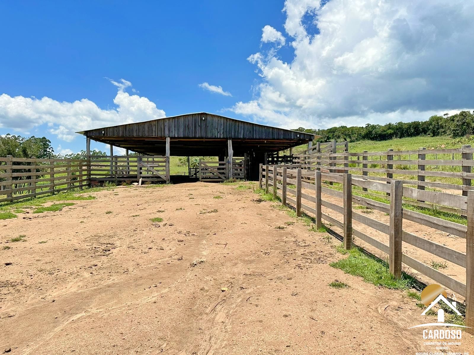 Dividido em uma área de 10mx25m com cochos de concreto para possível confinamento ou semi.