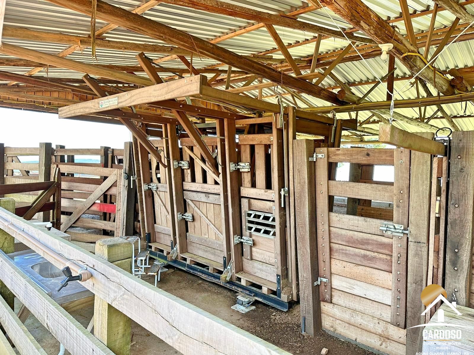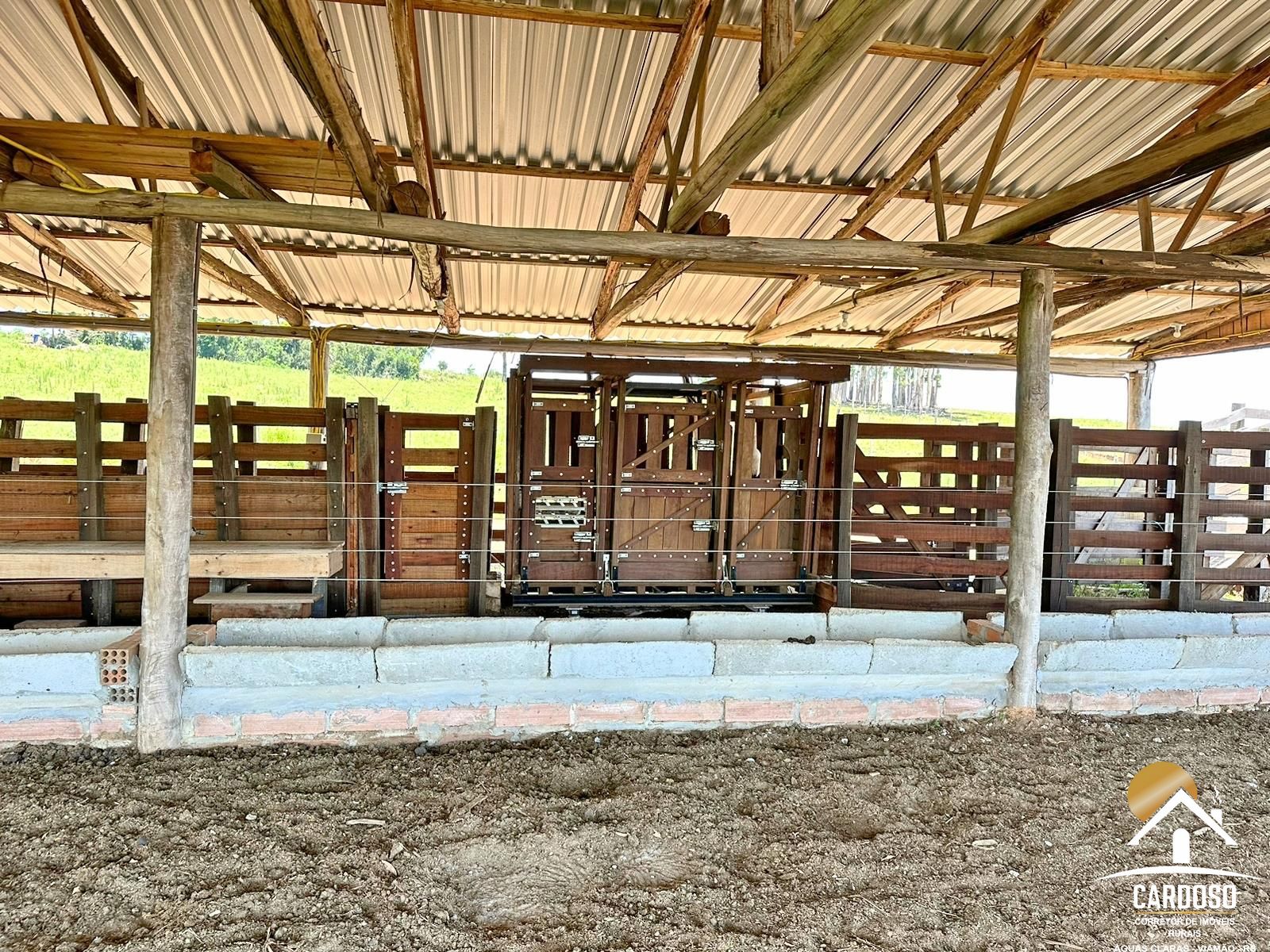 Outra área de 5mx25m, com curral, brete, tronco com balança digital, rampa para carga e descarga do gado.