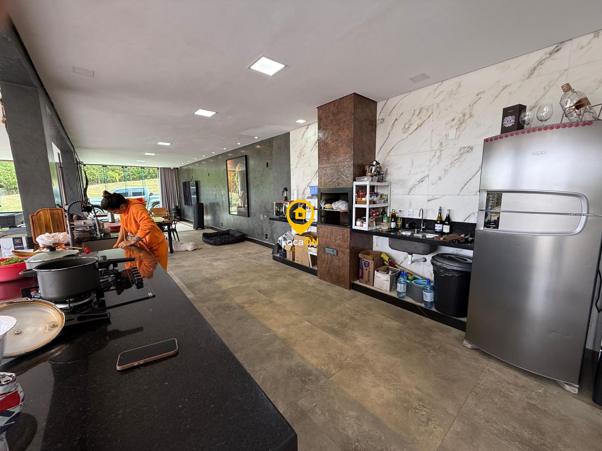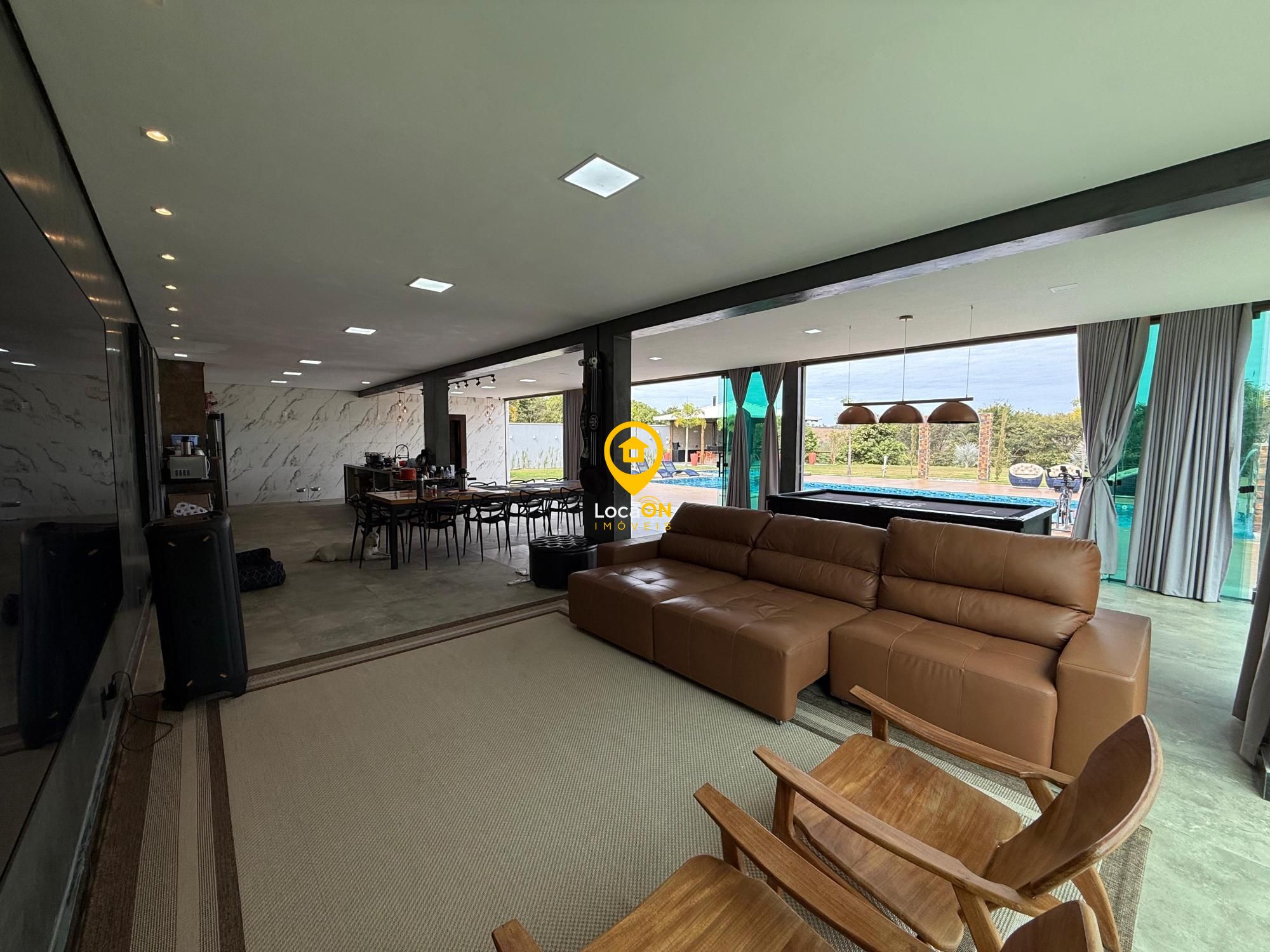 Amplas salas (estar e jantar) integradas à cozinha gourmet