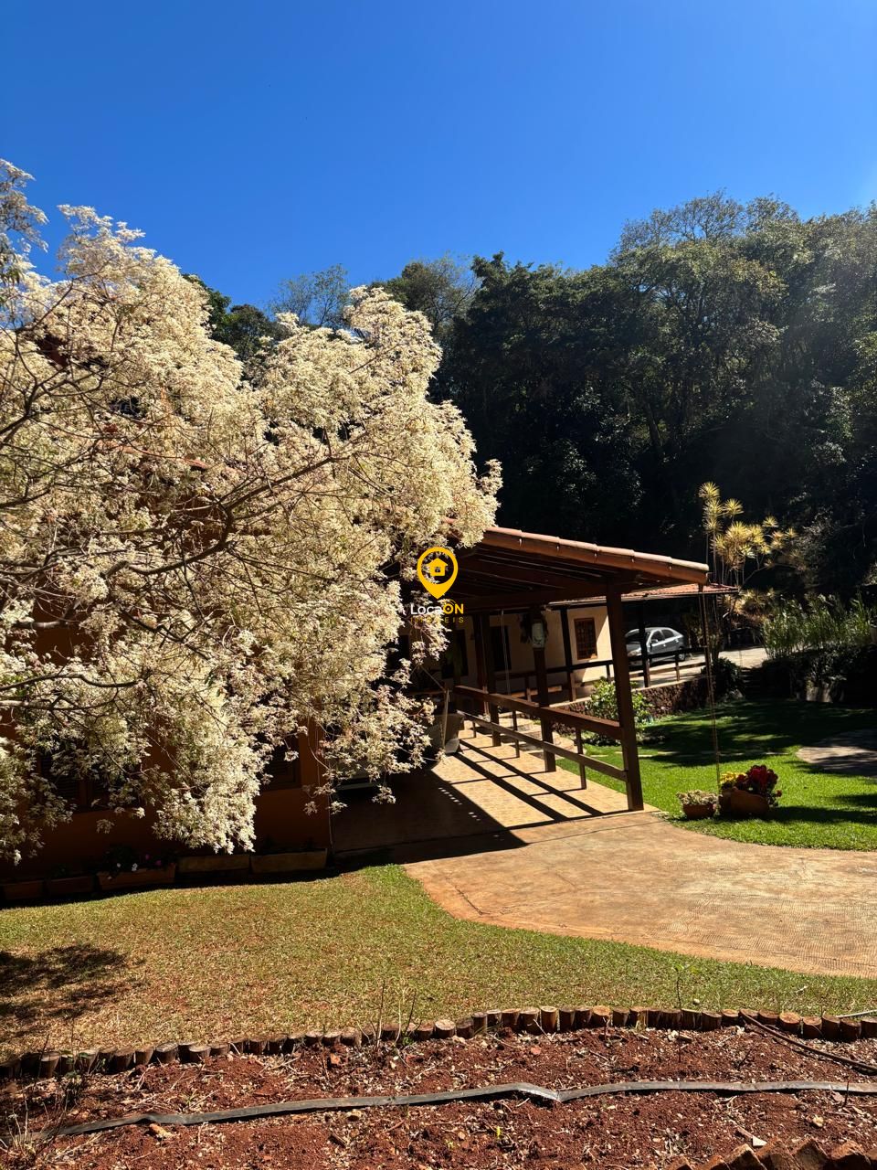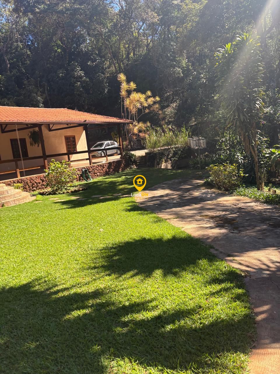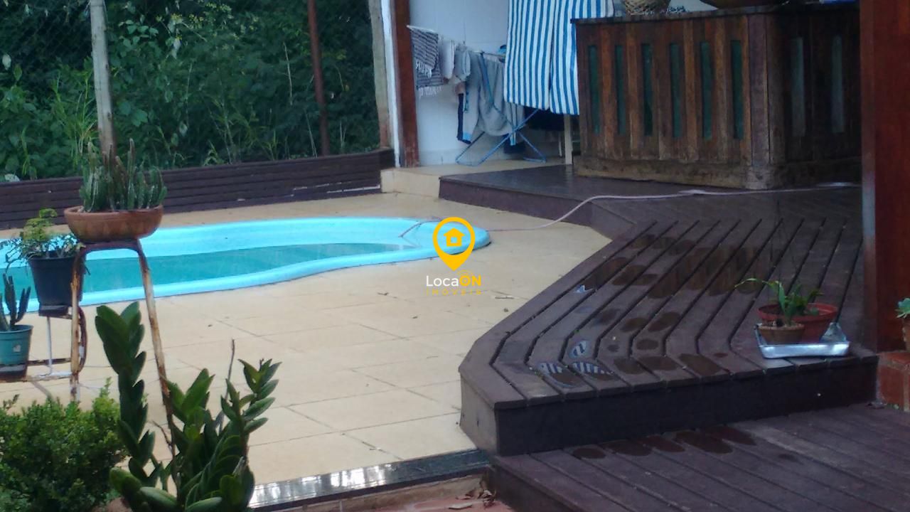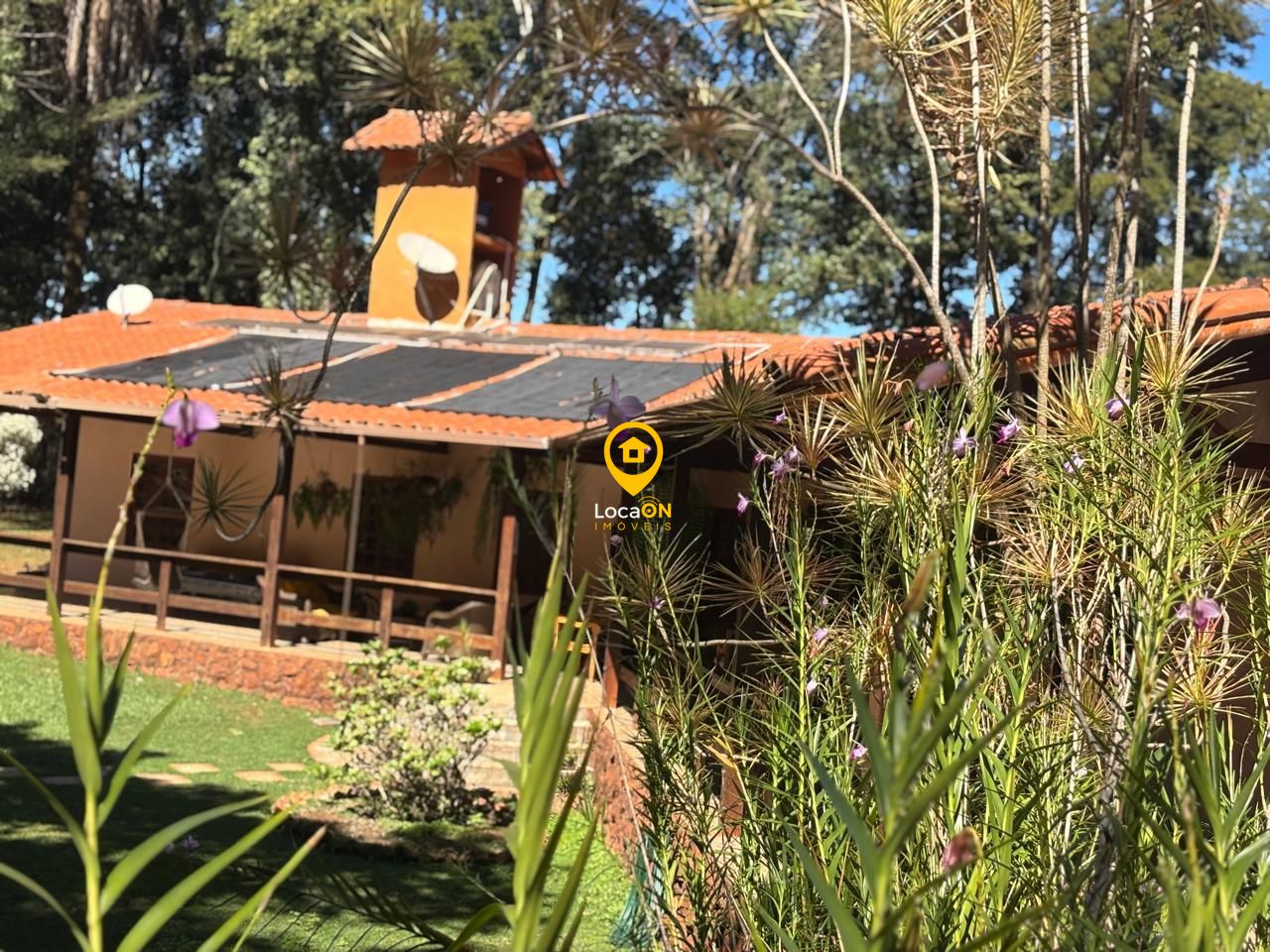 Comodidades:Alarme, Portão eletrônico, Vídeo monitoramento, Circuito TV, Interfone, Banheiro social, Cozinha grande, Sala de almoço, Sala de jantar, Varanda, Lago, Piscina, Pomar, Churrasqueira, Jardim, Acesso asfaltado, Janela grande, Móveis planejados, Armário cozinha.