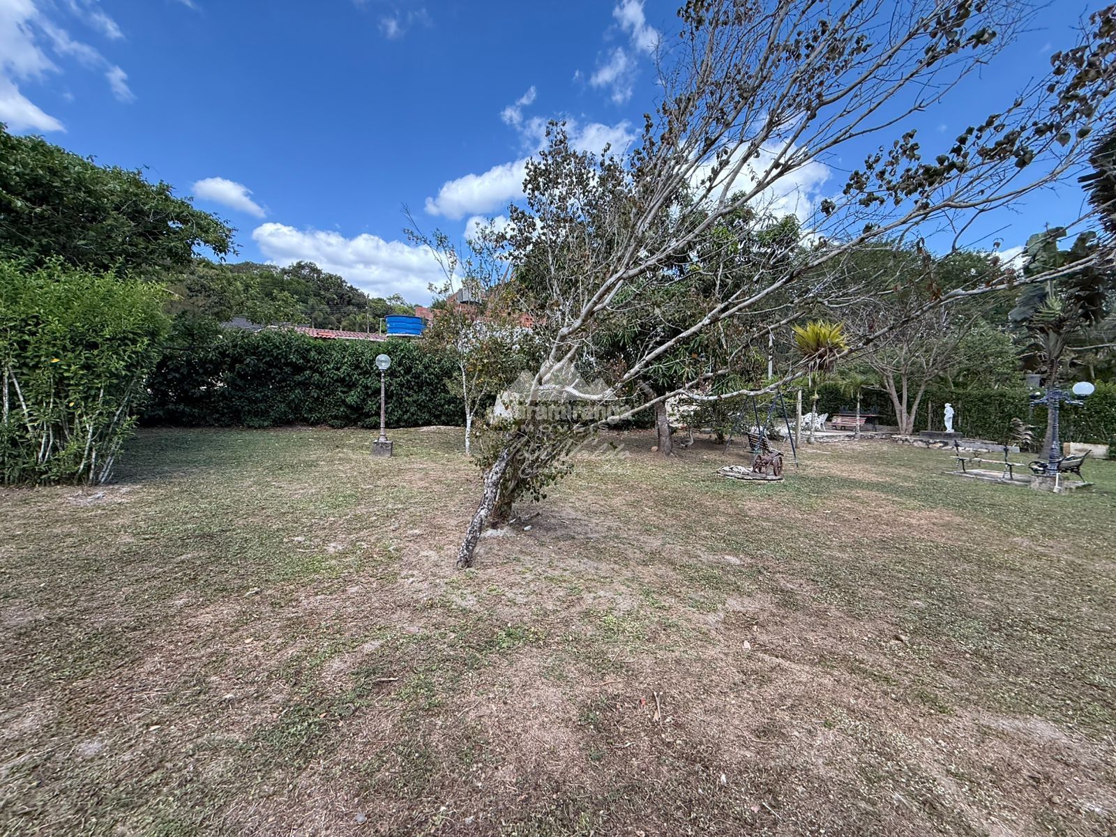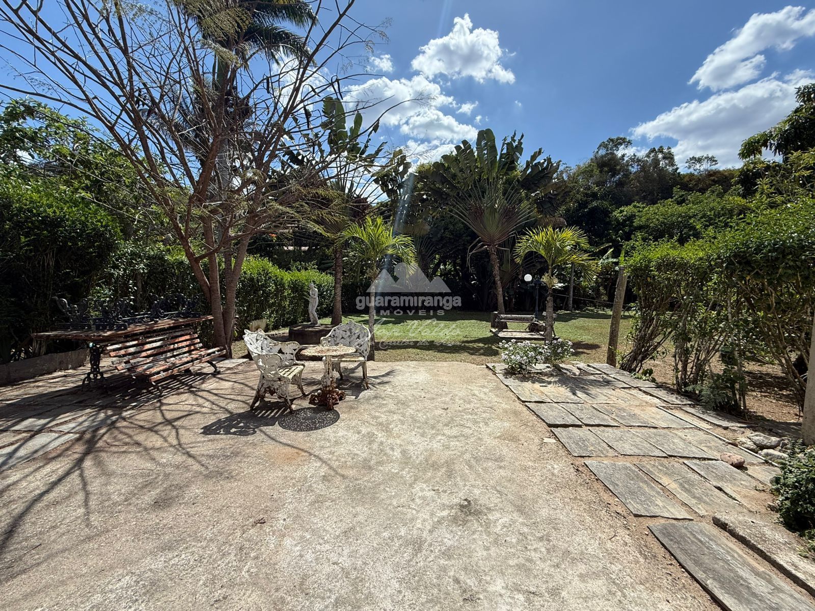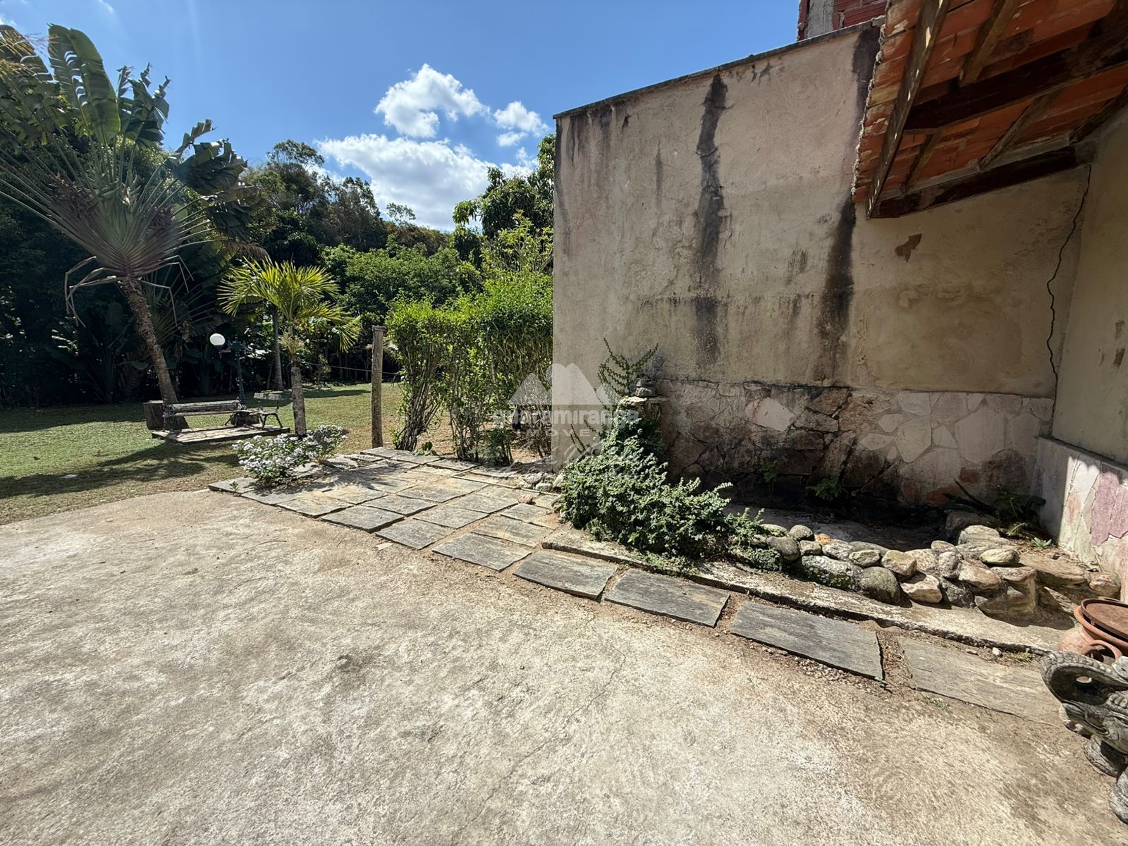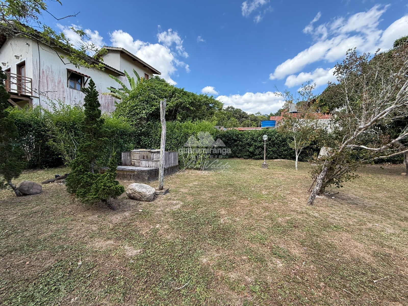 Area externa conta com jardim maravilhoso e amplo com bastante área plana e ainda conta com um riacho.