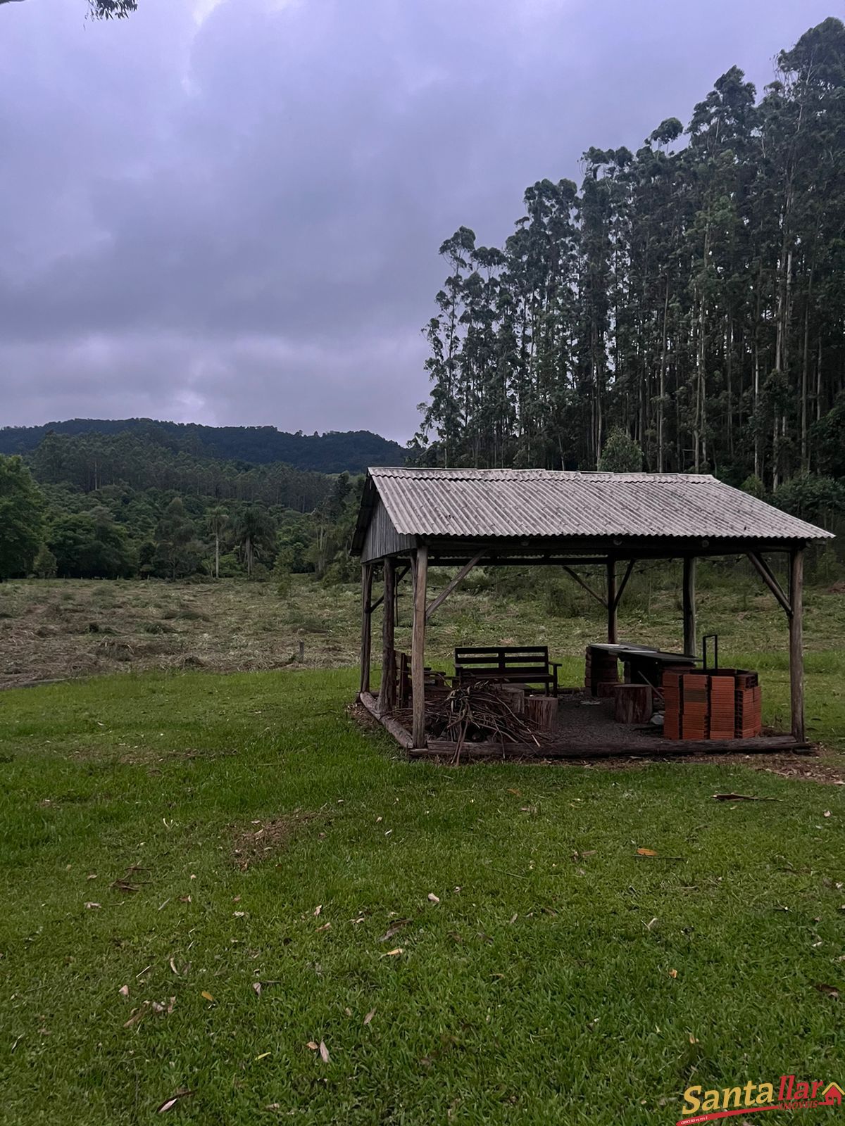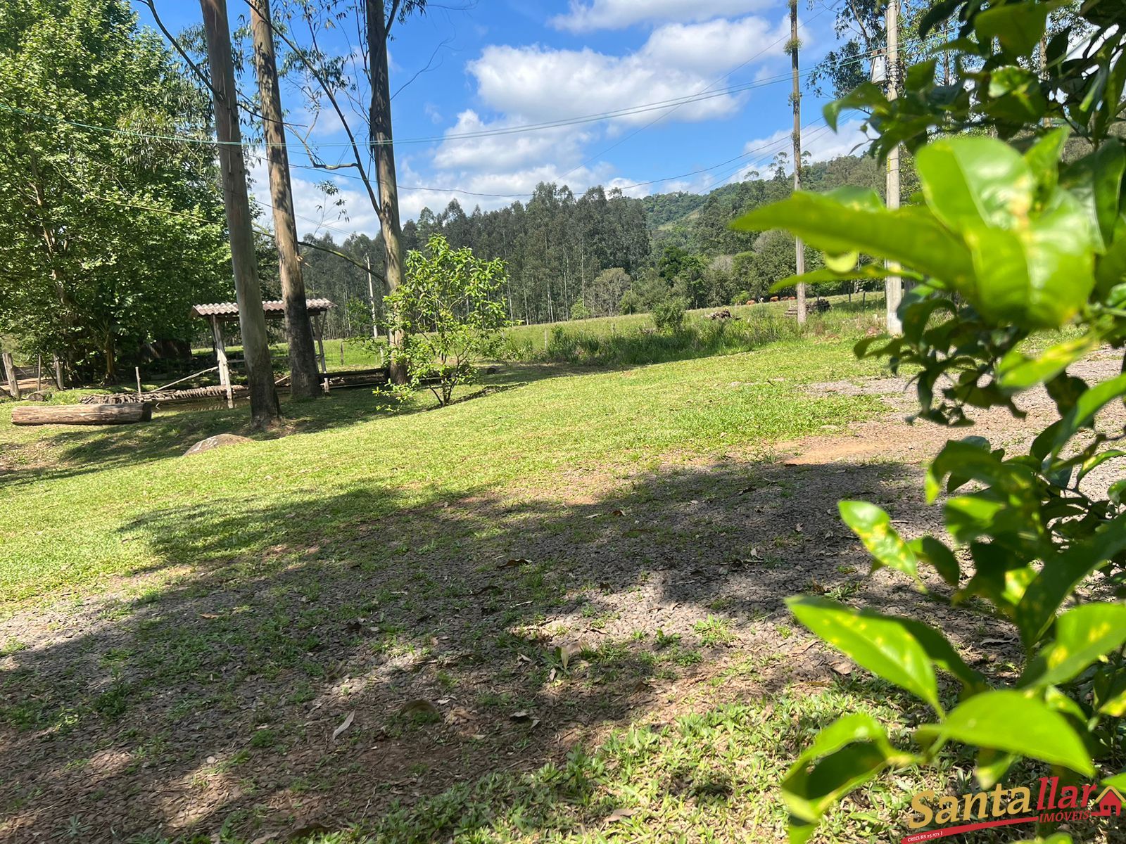 Estábulo para 3 cavalos, galinheiro, árvores frutíferas, local para churrasco, trilhas em meio a mata, riacho com água limpa, em torno de 1hectare de mata de eucalipto.