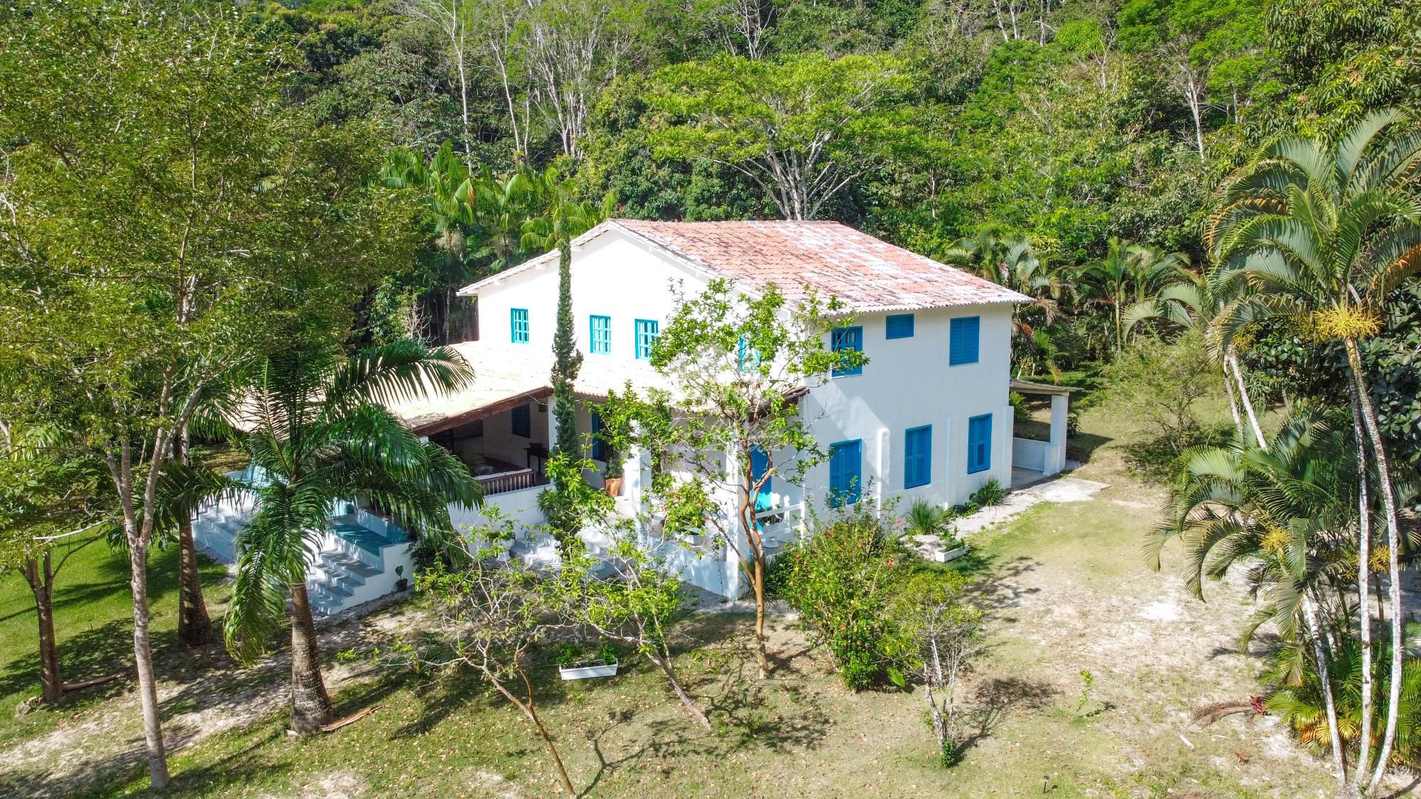 ¹ A casa principal tem 520m² dividida em sala de estar, sala de jantar, cozinha, 05 amplas suítes, sendo 02 delas com banheira, lavanderia e uma varanda em L com vista para o gramado.