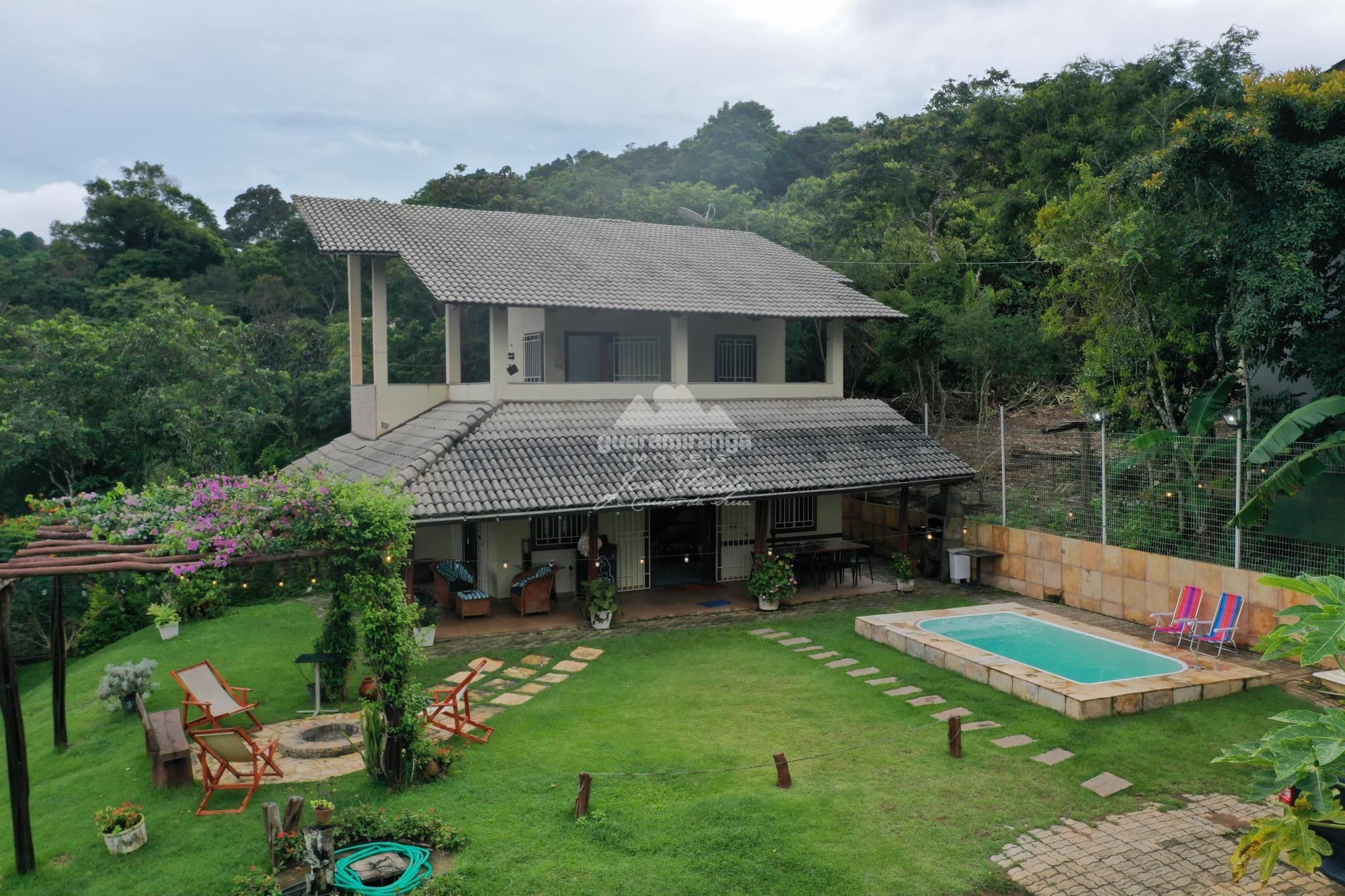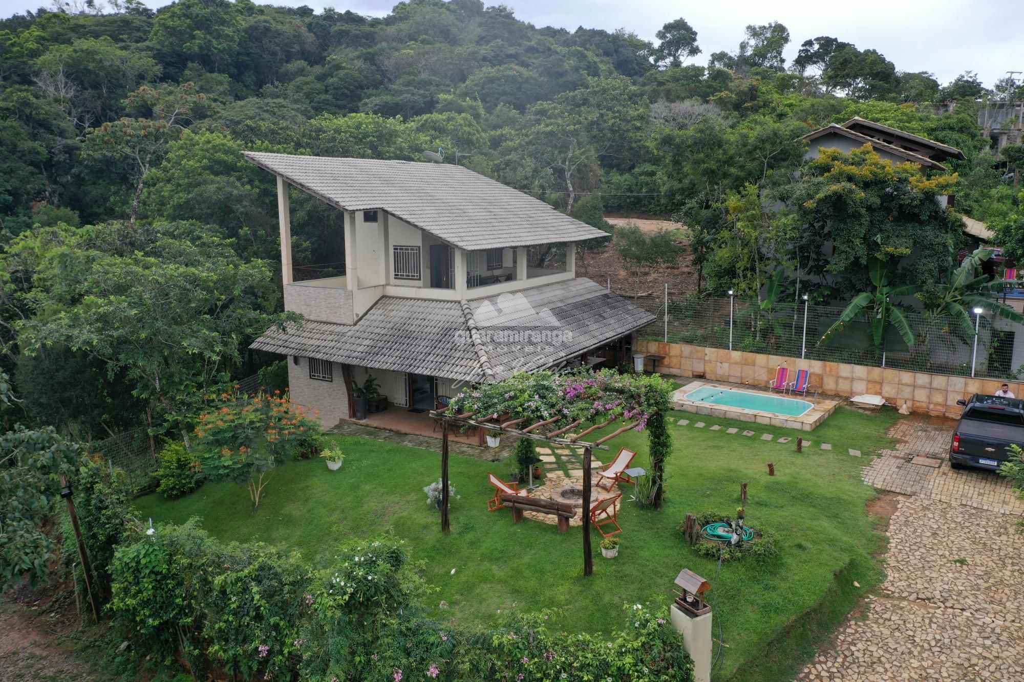 DESTAQUES: Paisagismo, piscina aquecida com borda infinita, 2 varandas, lareira de chão, vista panorâmica. Condomínio informal, taxa de água R$ 100,00.