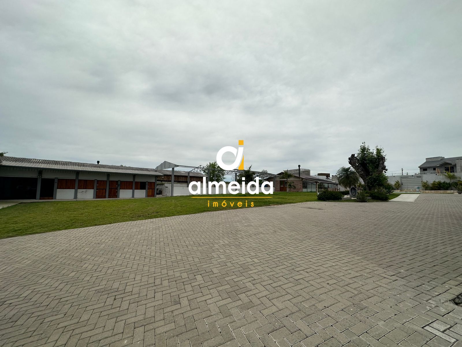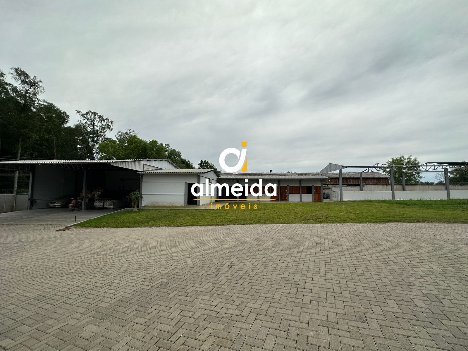 Todo o terreno no entorno dos pavilhões é pavimentado com blocos de concreto.