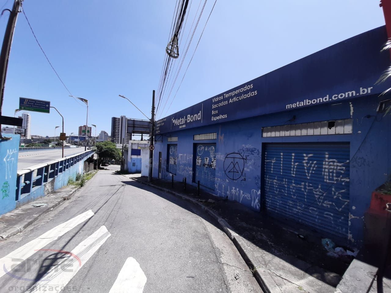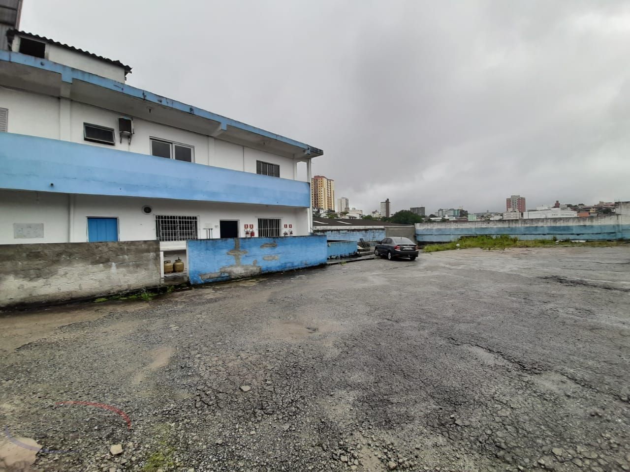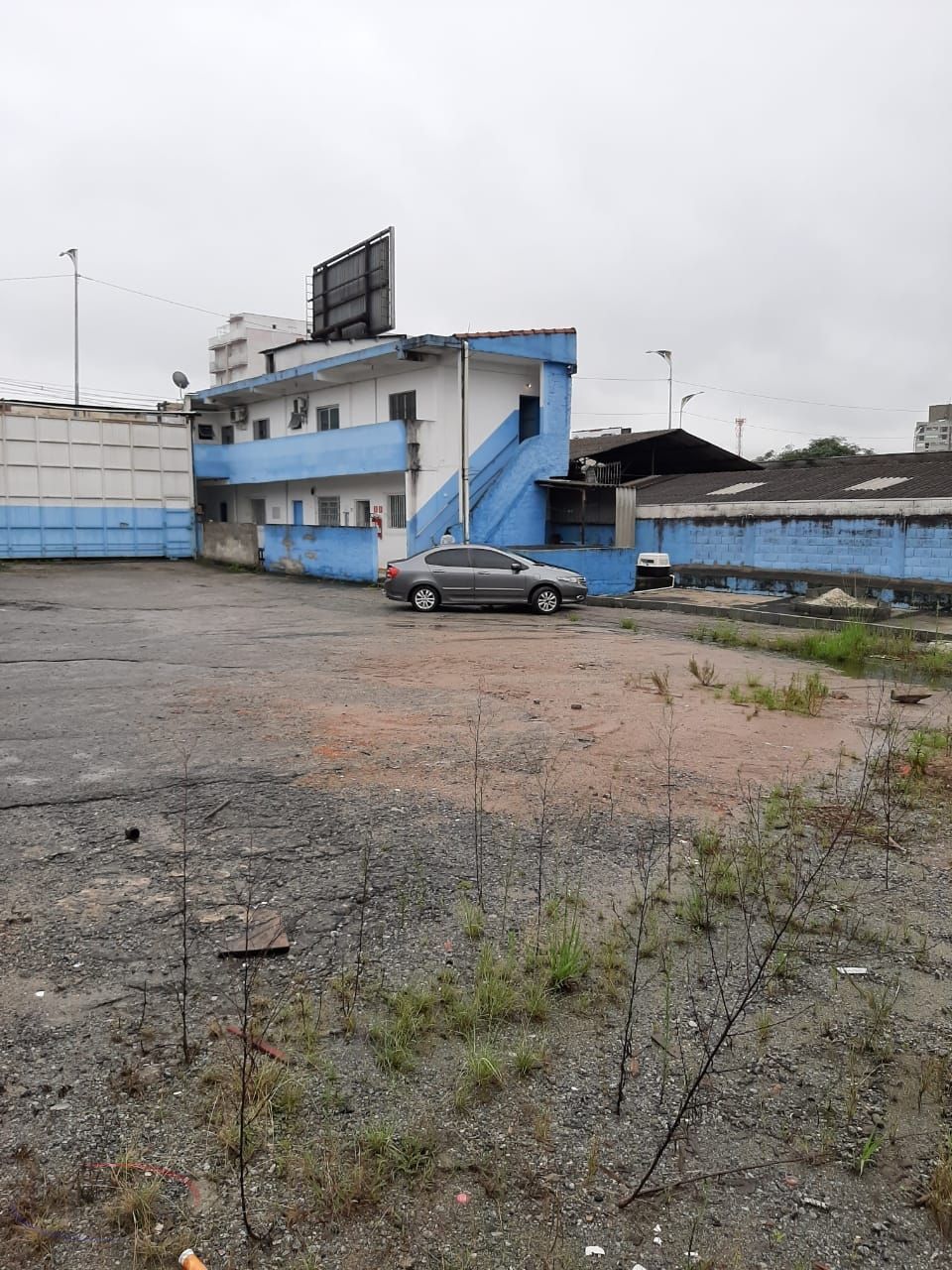 Galpão com escritórios, estacionamentos e duas casa no local.